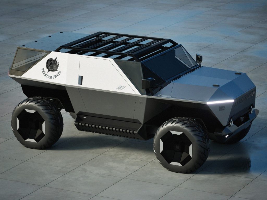 Les détails subtils ajoutent une personnalité unique au Cyber Tonka. La barre lumineuse intégrée sur le pare-chocs avant, le porte-bagages inspiré de l’univers de Mad Max et le logo "Phantom Sweep" sur le panneau latéral participent tous à l’originalité de ce concept. On a l’impression qu’il s’agit d’un véhicule conçu pour un monde où les routes sont optionnelles et où la survie est primordiale.