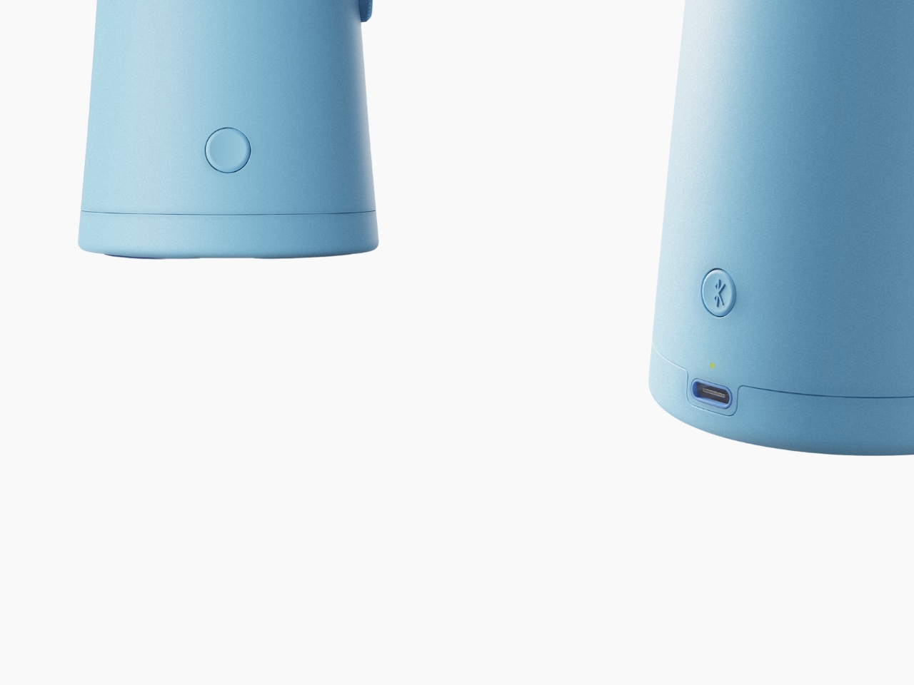 De plus, des éléments pratiques viennent compléter le design. La recharge par USB-C facilite l’utilisation en utilisant le même câble que celui de votre téléphone ou ordinateur portable, et un petit point LED informe de l’état de charge sans être intrusif. La base de l’appareil est dotée de patins antidérapants subtils, garantissant sa stabilité lors de vos gestes nocturnes.