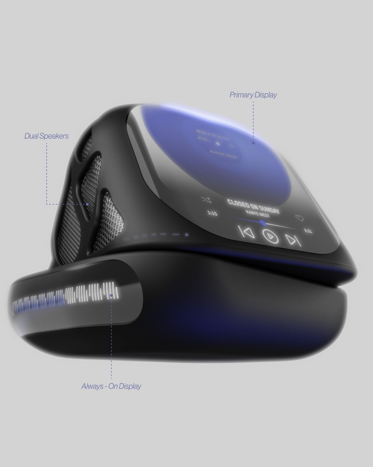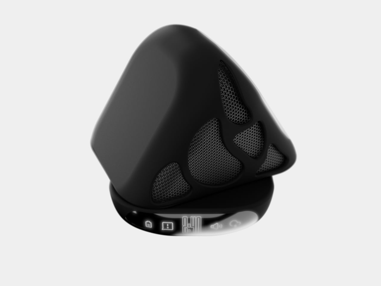 Au premier coup d’œil, le système ONZA évoque quelque chose d’émanant d’un futur esthétique. Sa forme géométrique élégante attire immédiatement le regard sans pour autant être criarde. Avec ses angles acérés et sa finition noire brillante, ce dock affiche une sophistication naturelle. Les panneaux en mailles organiques qui l’entourent ne servent pas uniquement d’élément de design. Ils font également office de grilles de haut-parleurs, transformant cet appareil en une solution audio performante.