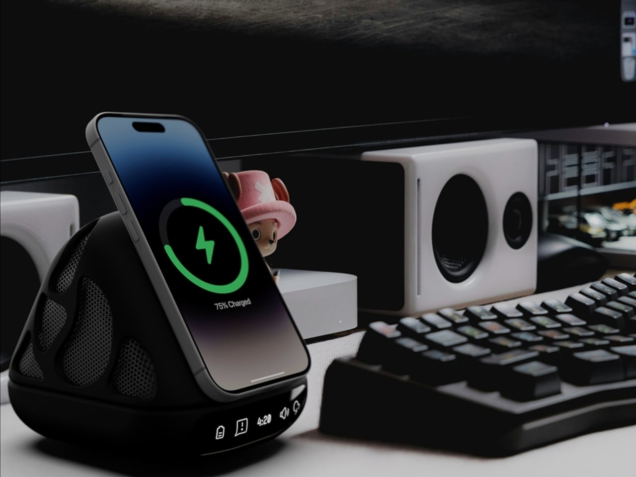 Ces icônes discrètes sur la base du dock ne sont pas qu’une simple décoration. Elles fournissent des informations visuelles sur le statut de la batterie, la connectivité de stockage, les capacités sans fil, et les fonctions audio. Tout ce que vous devez savoir d’un coup d’œil, sans surcharge d’informations ou lumières clignotantes dérangeantes pendant que vous vous concentrez. C’est le genre de détail réfléchi qui distingue l’art conceptuel de la véritable pensée design.
