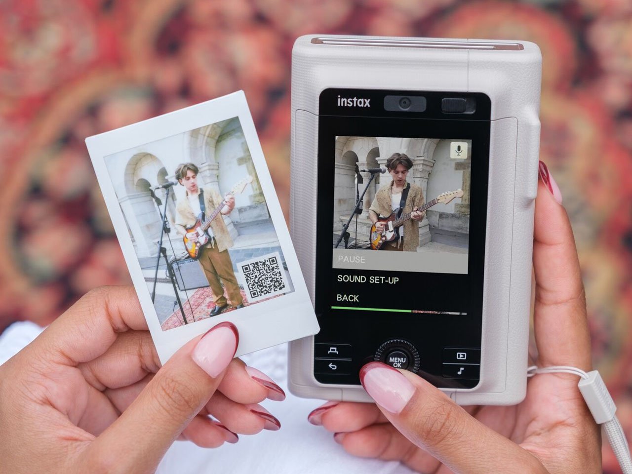Chaque photo prise avec la instax mini LiPlay+ peut contenir un court extrait audio accessible via un code QR. Bien que la durée de l’extrait audio soit maintenant limitée à trois secondes, ces moments peuvent être rejoués pendant deux ans grâce à l’application compagnon.
