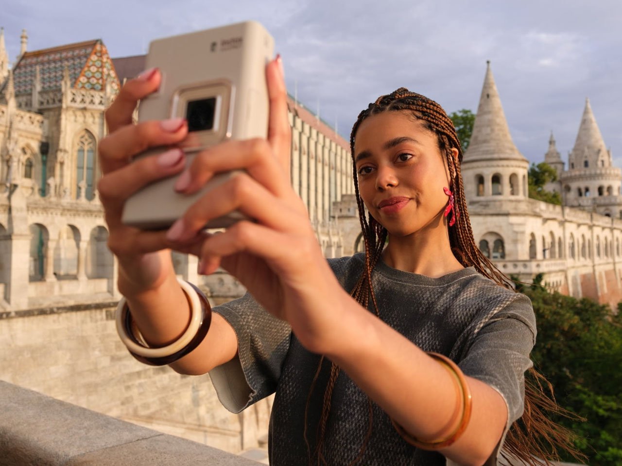 L’appareil est équipé d’un système de double caméra qui intègre un objectif principal à l’avant et un objectif grand angle à l’arrière, permettant aux utilisateurs de changer de perspective en un clin d’œil. Le mode photo en couches innovant permet de créer des images composites à l’aide des deux lentilles via des modèles prédéfinis, rendant obsolètes les doubles expositions traditionnelles.