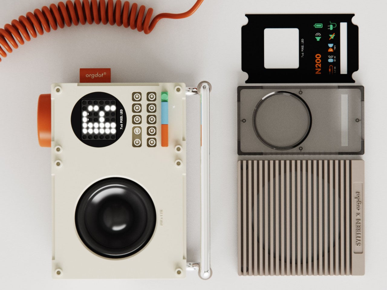 Le haut-parleur Orgdot s’inspire du design modulaire des briques LEGO, offrant un panneau avant interchangeable, des boutons physiques, des voyants lumineux et un affichage à matrice de points. À première vue, il peut sembler inspiré par Teenage Engineering, mais il se distingue par son approche unique. Ce haut-parleur devient ainsi bien plus qu’un simple appareil pour écouter vos morceaux préférés ; il se transforme en un compagnon sonore amusant à explorer sur votre bureau.