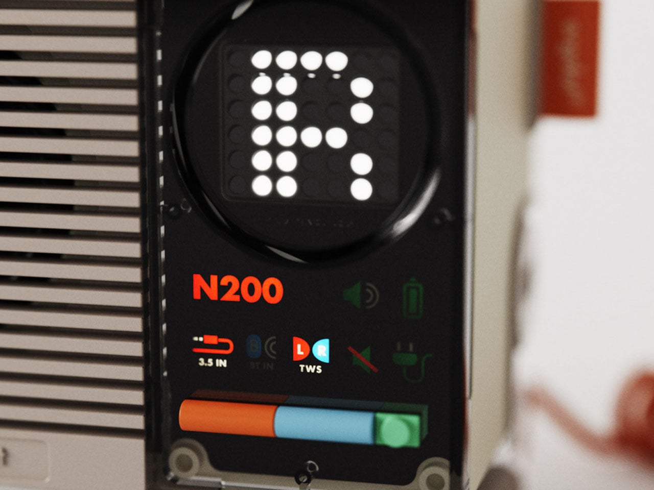 Le haut-parleur de 8W est fabriqué à partir de plastique, de métal et de caoutchouc, avec des zones fonctionnelles placées stratégiquement pour une expérience tactile optimale. Il prend en charge le couplage TWS, permettant de connecter deux N200 pour un paysage sonore encore plus immersif. L’affichage pixelisé fournit toutes les informations nécessaires sur la lecture en cours ainsi que des émoticônes préenregistrées, ajoutant une touche ludique à votre expérience audio.