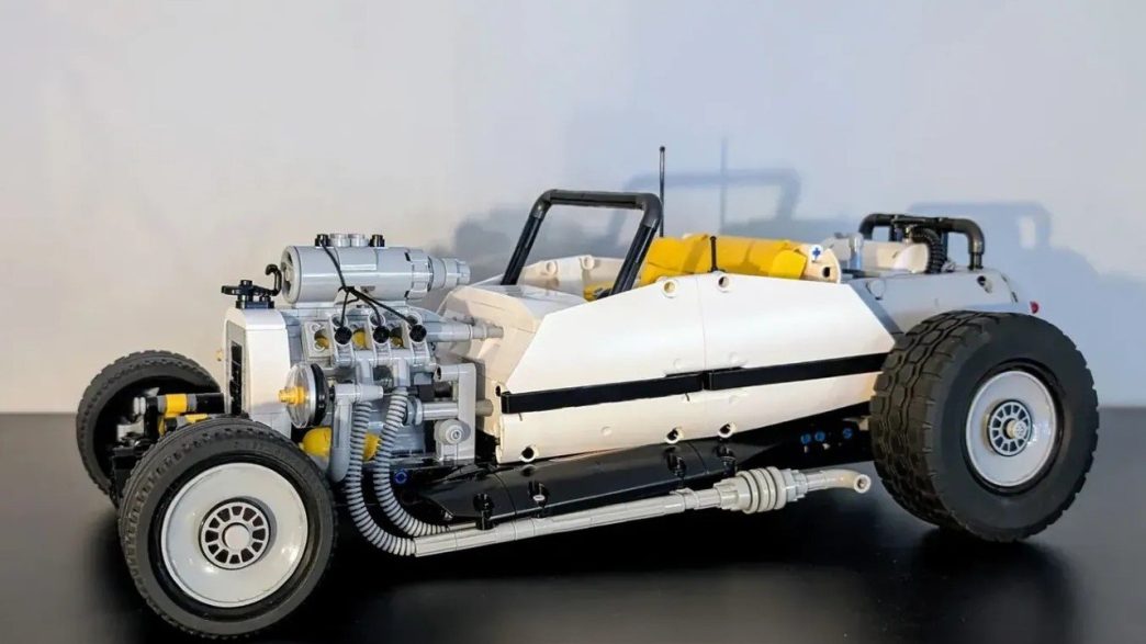 Les constructions personnalisées en LEGO peuvent parfois donner lieu à des mélanges désordonnés entre les pièces du système et celles de la série Technic. Cependant, ce modèle réussit à établir un équilibre parfait. La carrosserie est lisse, les éléments mécaniques sont exposés aux bons endroits, et tout semble s’imbriquer parfaitement. Même le cockpit, avec ses sièges minimaux et ses barres anti-roulis, s’harmonise avec l’esthétique globale du véhicule. Ce hot rod paraît prêt à parcourir une route désertique, soulevant un nu de poussière derrière lui.