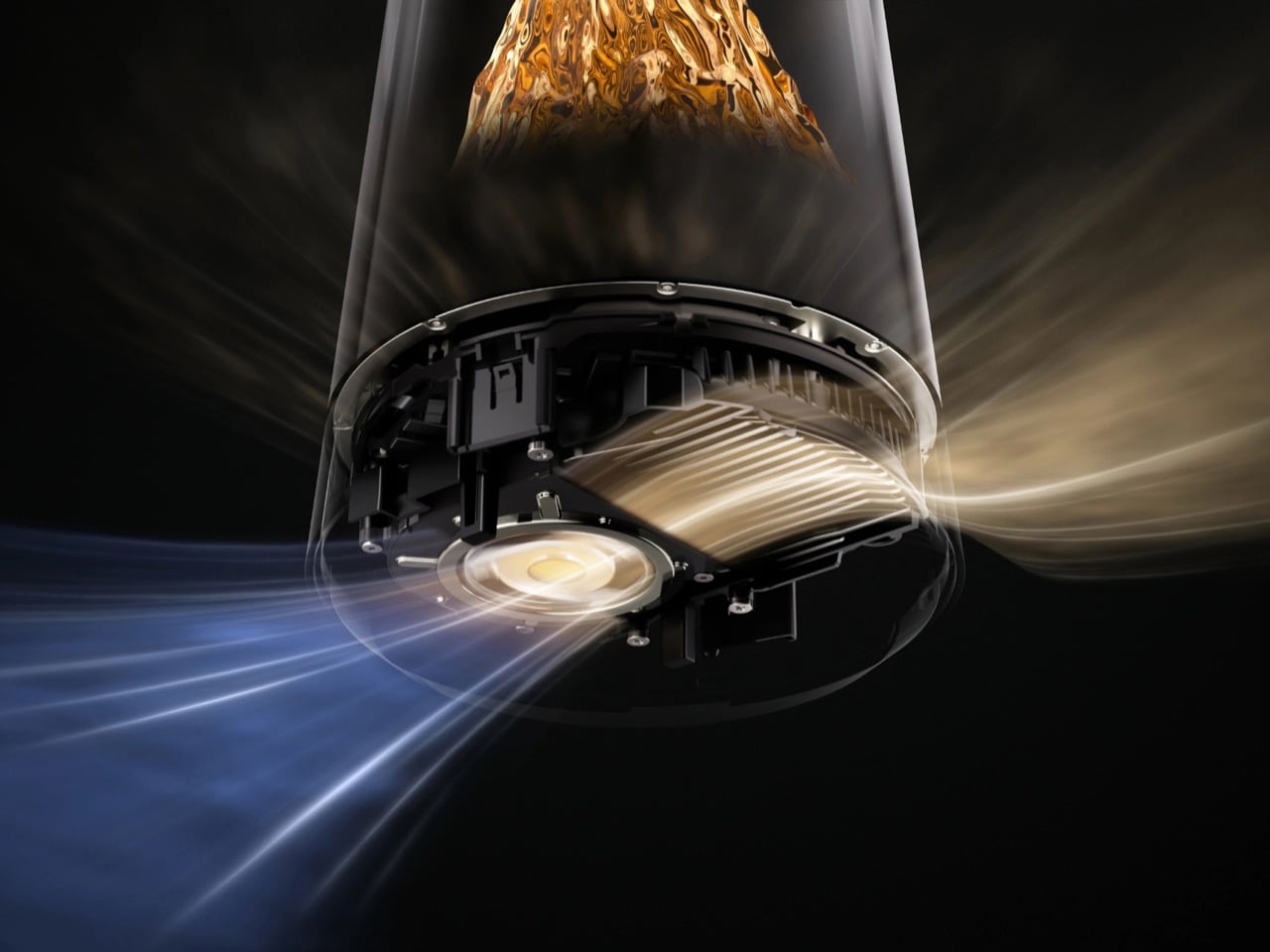 Cette conception n’est pas seulement esthétique ; elle est aussi fonctionnelle. Les antennes, souvent la partie la moins agréable d’un routeur, sont habilement dissimulées à l’intérieur de ce noyau central à l’apparence de montagne. L’éclairage, au lieu d’être une série de voyants distractifs en bleu et vert, produit une lueur ambiante douce, variant entre un ambre chaleureux et un blanc glacial tout au long de la journée. Cette lumière évoque un lever de soleil au sommet d’une montagne et transforme le routeur en un élément de conversation qui invite à être placé au centre de votre espace de vie, où il fonctionne de manière optimale.