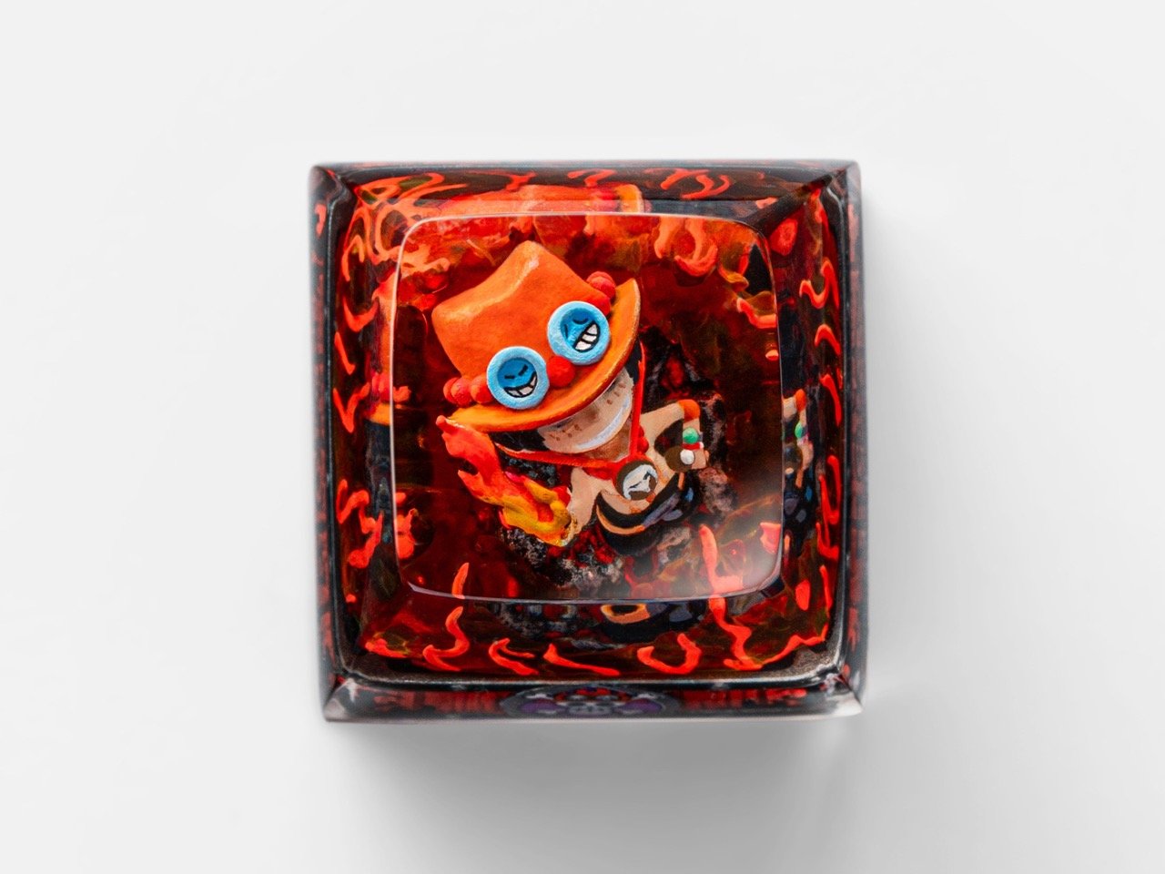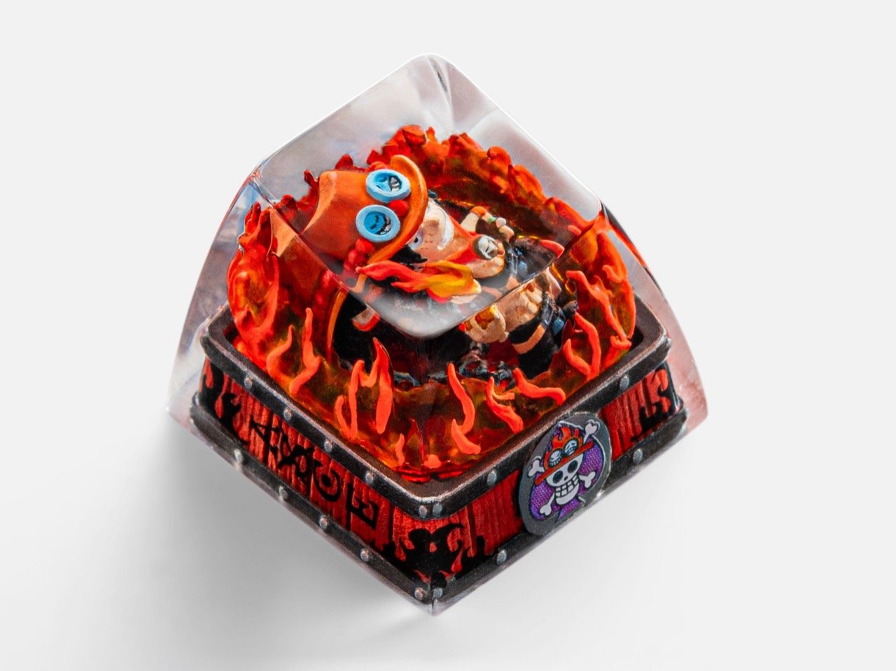 Le keycap Portgas D. Ace de Dwarf Factory est un accessoire artisanal pour clavier qui représente le personnage d’Ace de One Piece. Fabriqué en résine, il est rempli de détails minutieux et dispose d’un design de pirate, avec des flammes orange et rouges l’entourant.