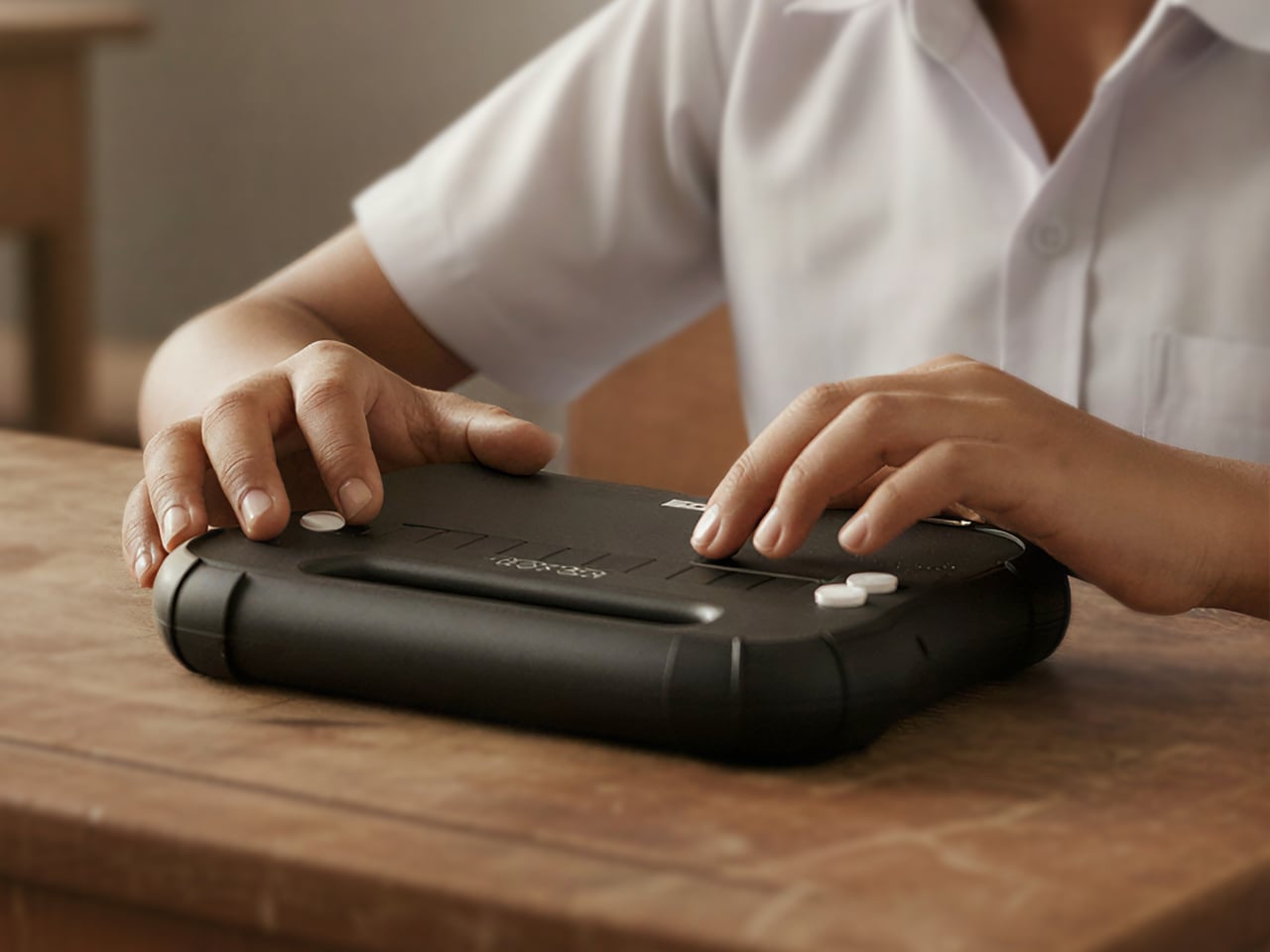 La technologie d’assistance pour les enfants ne reçoit pas toujours l’attention dont elle a besoin en termes de design par rapport aux outils classiques de la salle de classe. Cependant, le Hexis donne une importance égale à la robustesse, à l’accessibilité et à une forme conviviale. Pour les élèves aveugles, avoir un lecteur braille qui ressemble à un compagnon de classe normal, plutôt qu’à un accessoire distinct, représente un changement discret mais significatif. Le Hexis se trouve à côté des trousses de crayons et des cahiers, s’intégrant parfaitement dans l’univers scolaire.