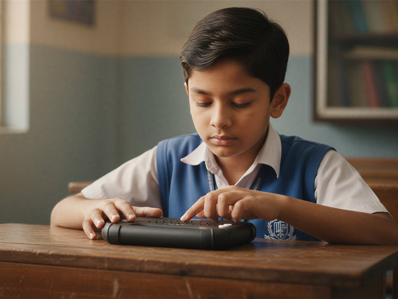 Le lecteur Vembi Hexis est conçu spécifiquement pour les enfants, avec un design robuste et portable, permettant aux jeunes utilisateurs de transporter facilement l’appareil entre les salles de classe. Il transforme les manuels numériques en lignes de Braille sur demande dans plusieurs langues indiennes et en anglais, répondant ainsi aux besoins éducatifs des élèves malvoyants.