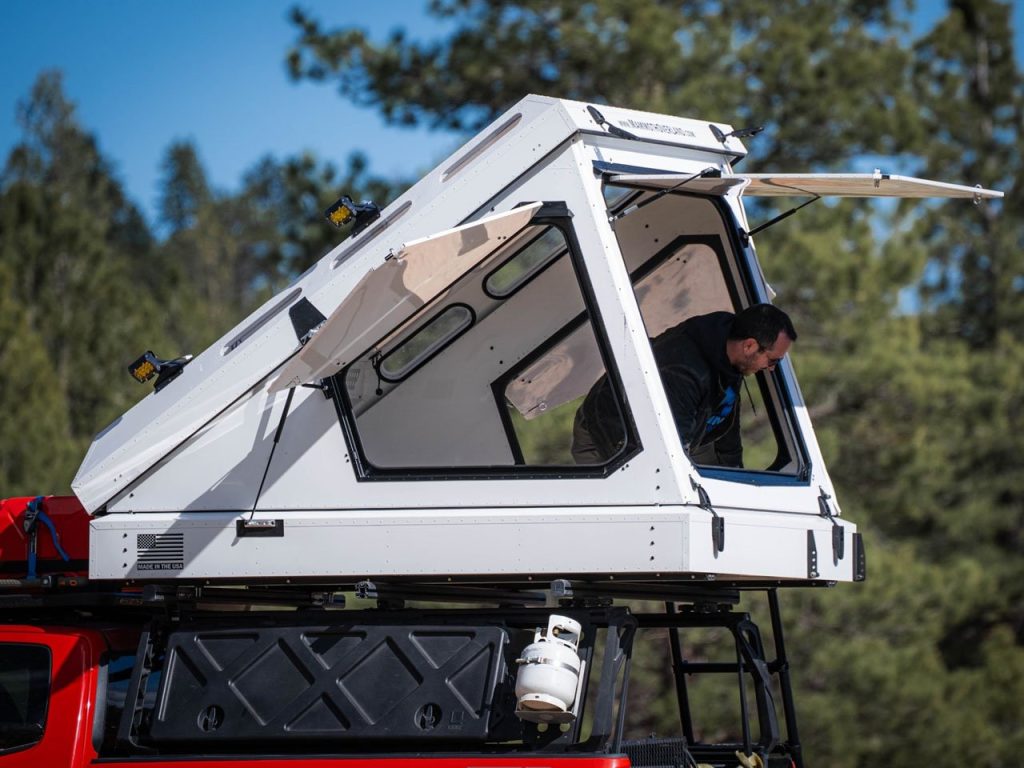 Le SKL est conçu pour répliquer le confort d’une remorque dans une solution d’habitat compact sur le toit. Ses murs solides se replient de manière origami, se distinguant ainsi des tentes de toit traditionnelles, qui sont souvent fabriquées à partir de matériaux souples. Grâce à sa construction en aluminium, le Mammoth Overland SKL possède une coque isolée, avec une cote d’isolation de R5, et une alimentation énergétique complète pour le camping toutes saisons.