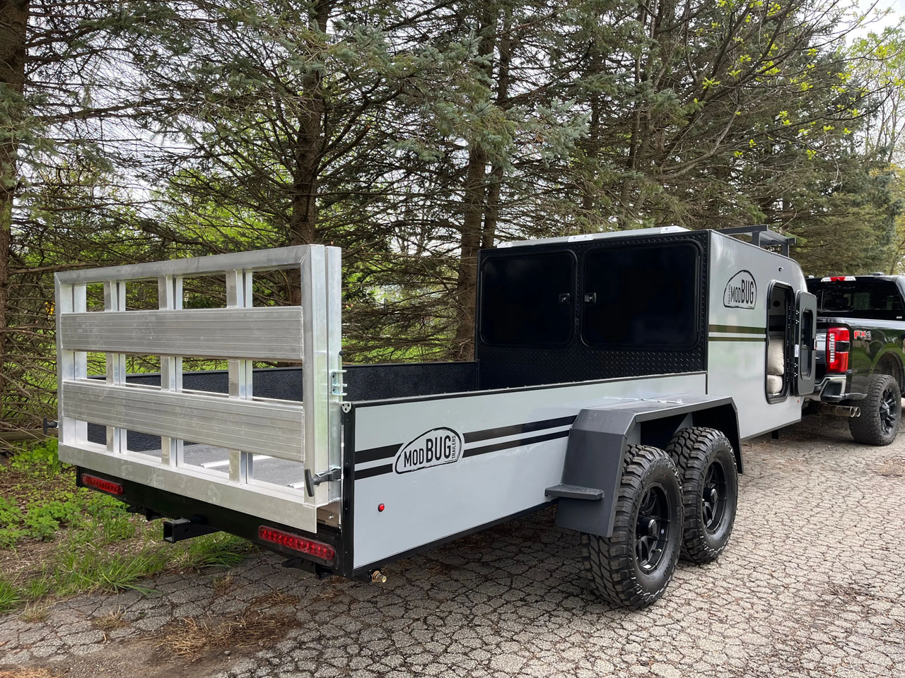 Construite en matériau composite à cadre en acier, la Modern Buggy UH18 est conçue pour durer. L’unité de vie est équipée de la climatisation et d’un ventilateur au plafond, assurant un confort en toute saison. De plus, la remorque est dotée d’un support de toit, offrant encore plus d’espace pour transporter votre matériel.