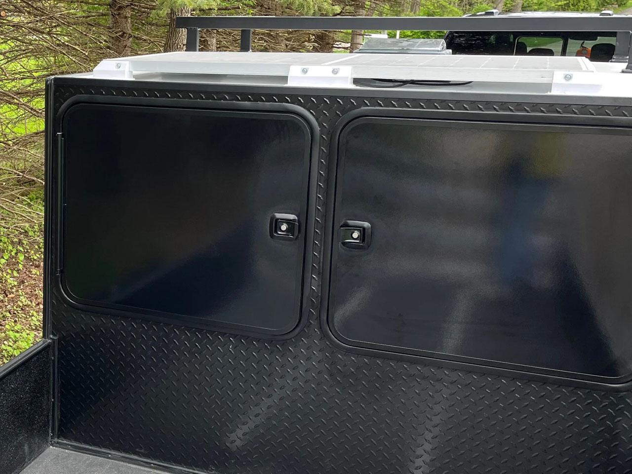 Le UH18 est fabriqué en matériaux composites en acier durables et peut être équipé de panneaux solaires ou d’une tente de toit pour augmenter l’espace de couchage lors des séjours prolongés.