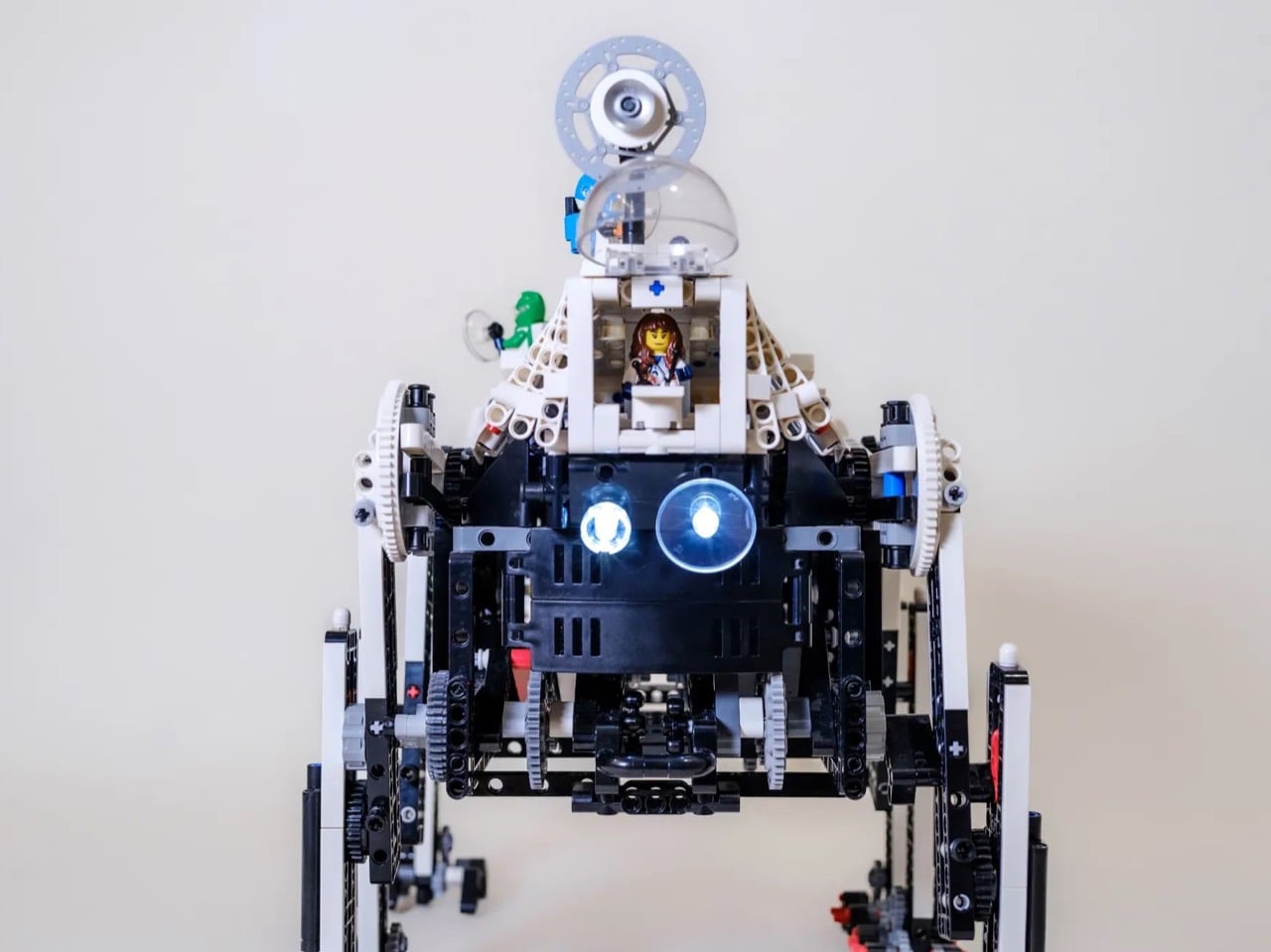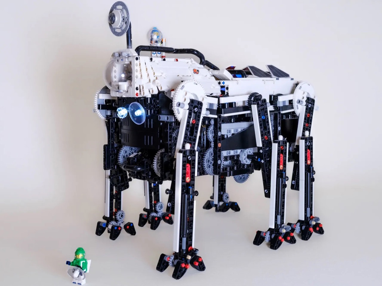 Conçu par Alexis_MOCs_FR, ce modèle présente un aspect futuriste des années 70. Doté de panneaux blancs, d’une structure noire, de cellules solaires bleues, et d’un cockpit surélevé pour deux figurines d’astronautes, chaque détail compte. Un parabole se trouve sur le dessus pour accentuer le côté explorateur. Mesurant entre 30 et 40 centimètres en fonction de l’échelle des figurines LEGO, le mécanisme d’engrenage est entièrement visible, ce qui est rare dans ce type de conception. Regarder le mouvement se transférer des moteurs à travers le système d’engrenage et jusque dans les jambes est fascinant.