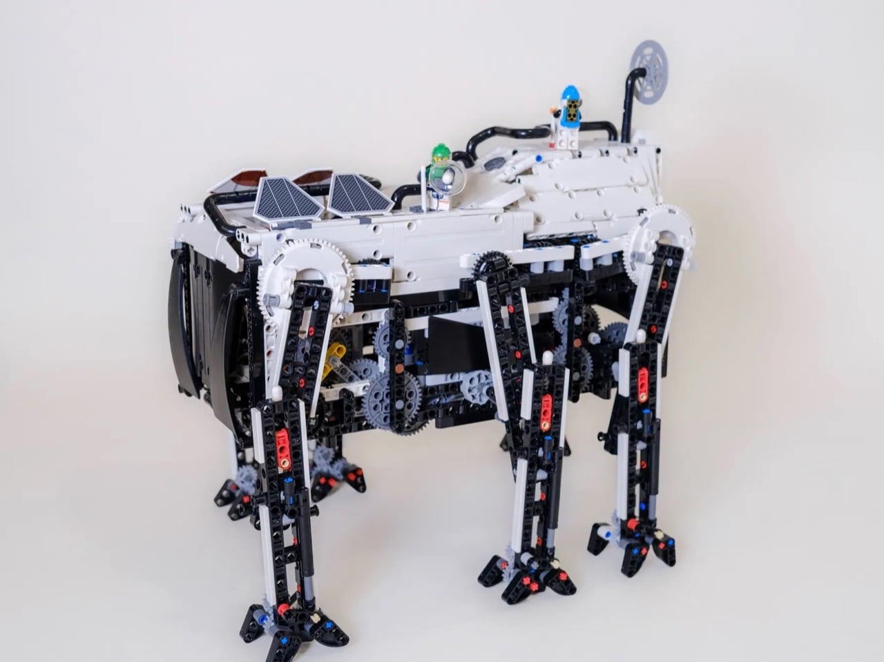 Le véritable secret réside dans le système d’engrenage. Plutôt que de programmer chaque jambe individuellement, cette construction utilise des engrenages à vitesse variable qui ajustent automatiquement la vélocité des jambes en fonction du cycle de la foulée. Lorsque le pied est planté, le mouvement est lent et mesuré, et devient rapide lorsqu’il est dans les airs. Combiné à un mécanisme de stabilisation verticale et à des pieds amortisseurs, ce modèle est capable de naviguer sur un terrain réel plutôt que sur des surfaces lisses, tout en adoptant une esthétique de rover d’exploration spatiale, équipée d’une cabine pour l’équipage et de panneaux solaires.