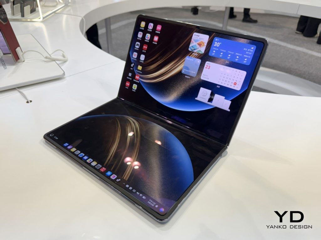 Le prix du MateBook Fold est impressionnant : 3 300 dollars américains, ce qui en fait un appareil haut de gamme. Pour l’heure, il n’est disponible qu’en Chine, en raison de son fonctionnement avec HarmonyOS, optimisé pour le marché intérieur. Physiquement, l’ordinateur est d’une beauté saisissante. Avec une épaisseur de 14,9 mm, il est légèrement plus épais que le Mate XT lorsqu’il est fermé, mais une fois ouvert, il se transforme en un laptop de 13 pouces avec un clavier tactile ou un moniteur tactile de 18 pouces, grâce à un support intégré à l’arrière.