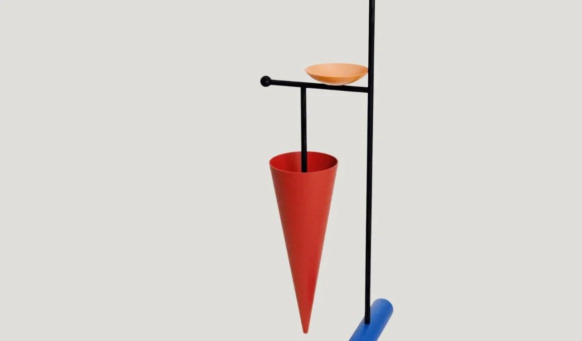 Les choix de couleurs semblent pensés d’une manière qui dépasse la simple attraction visuelle. La base bleue ancre l’ensemble de la pièce, tandis que le cône rouge crée un point focal attirant l’œil sans surcharger l’espace. Le plat orange apporte une chaleur qui équilibre les couleurs principales, évitant qu’elles ne paraissent trop vives ou enfantines. Ensemble, elles forment une palette à la fois ludique et sophistiquée, un équilibre délicat à atteindre.