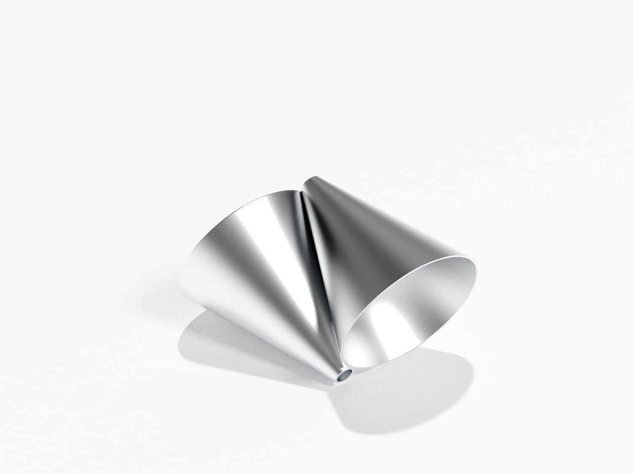 Konus est un support à stylo en aluminium qui prend au sérieux les principes du Bauhaus, ne se contentant pas de les utiliser comme simple décoration. Créé par Liam de la Bedoyere, ce support est constitué de deux cônes inversés, l’un creusé pour accueillir les outils de tous les jours, et l’autre réduit à une simple ouverture pour un stylo sélectionné. Ce projet personnel lui confère une touche de pureté et d’impartialité, contrairement aux organisateurs conçus pour le marché de masse qui essayent de plaire à tout le monde et finissent par avoir un aspect générique.
