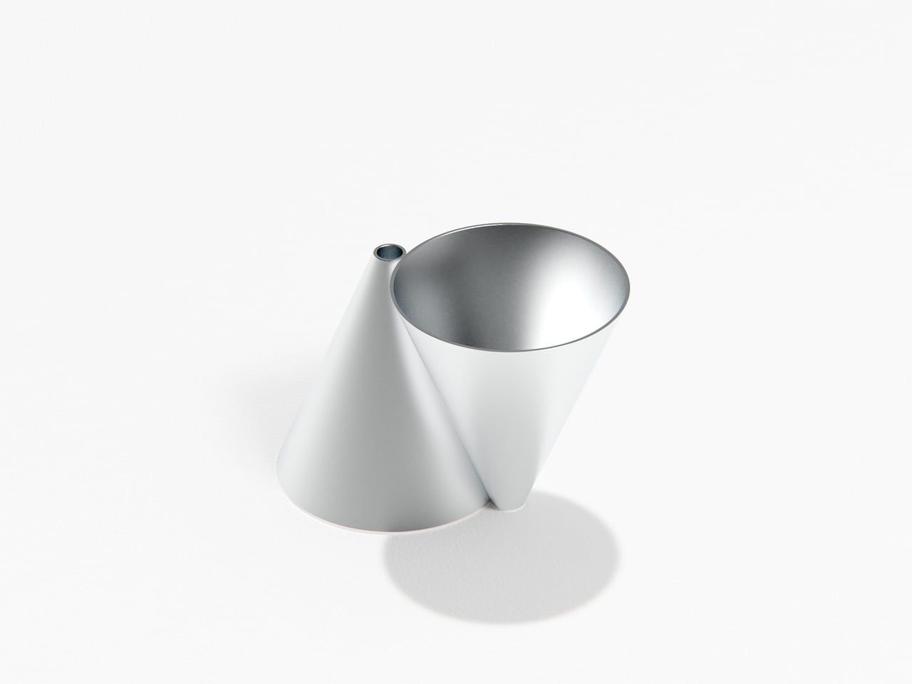 Le porte-stylo Konus est un organiseur en aluminium, conçu selon les principes du Bauhaus, qui se compose de deux cônes inversés : un pour ranger les outils quotidiens et un autre pour un stylo particulier.