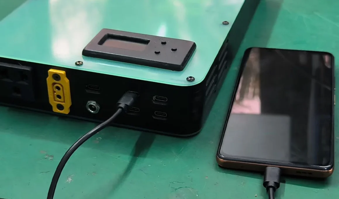 À l’intérieur de la station d’énergie, un microcontrôleur ESP32-C3 supervise les opérations du système. Il recueille des données en temps réel telles que la tension, le courant et la température à partir de capteurs et affiche ces informations sur un écran OLED de 1,3 pouce avec des boutons de navigation simples. Quatre capteurs de température surveillent le pack de batteries, les dissipateurs thermiques et l’inverseur, tandis que des ventilateurs de refroidissement de 40 mm se déclenchent si nécessaire pour gérer la chaleur durant les charges élevées. Des dissipateurs en aluminium personnalisés avec des pads thermiques sont inclus pour réduire davantage le stress thermique.