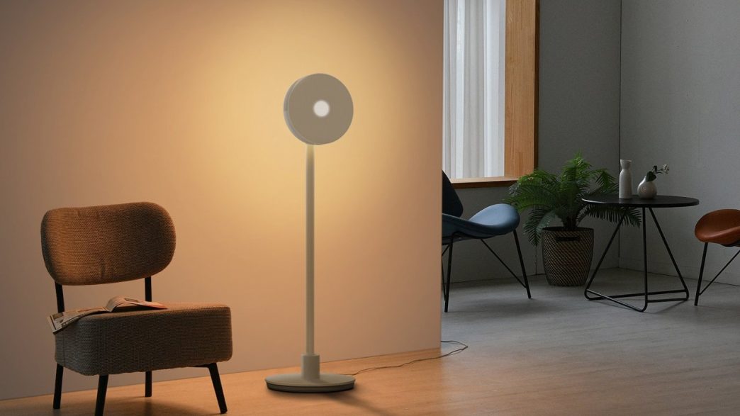 Conçu par LG, ce projecteur peut sembler être une simple lampe sur trépied. Son design particulier, avec un cercle lumineux, cache en fait une technologie avancée. La lampe diffuse la lumière principalement à l’arrière et propose neuf couleurs différentes avec cinq niveaux de luminosité. Son bras peut être incliné jusqu’à 110 degrés, vous permettant de créer l’ambiance désirée.