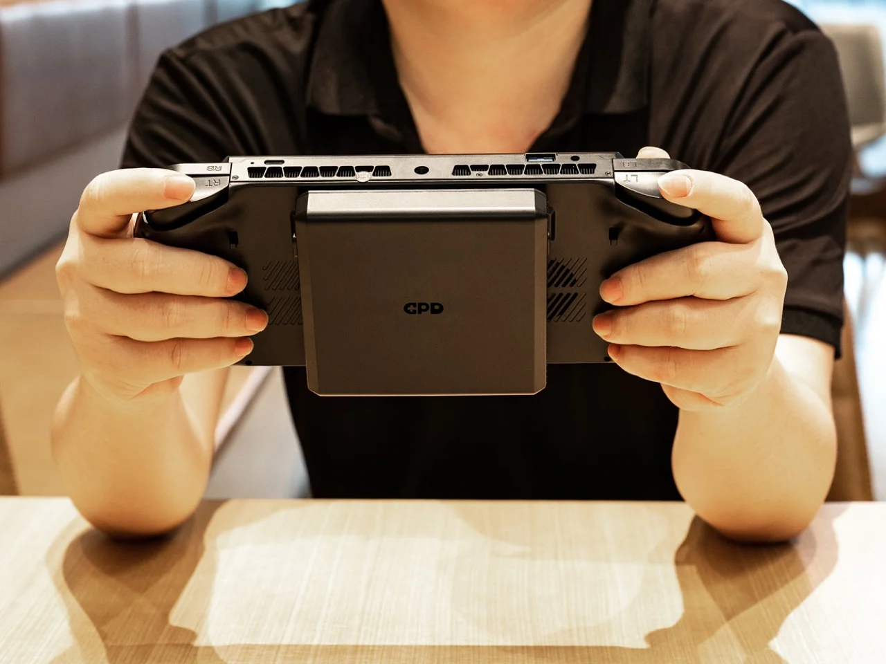 L’une des décisions de conception les plus intéressantes de GPD est la batterie externe de 80 Wh. Plutôt que d’intégrer une énorme cellule à l’intérieur, le fabricant a choisi de diviser l’alimentation en un module amovible. Ce dernier peut se clipser à l’arrière de l’appareil pour une expérience autonome ou se connecter par câble, réduisant ainsi le poids du handheld. Cette approche reconnaît une réalité souvent ignorée dans le marketing : le jeu intensif consomme beaucoup d’énergie, et GPD privilégie la modularité sur des solutions tout-en-un.