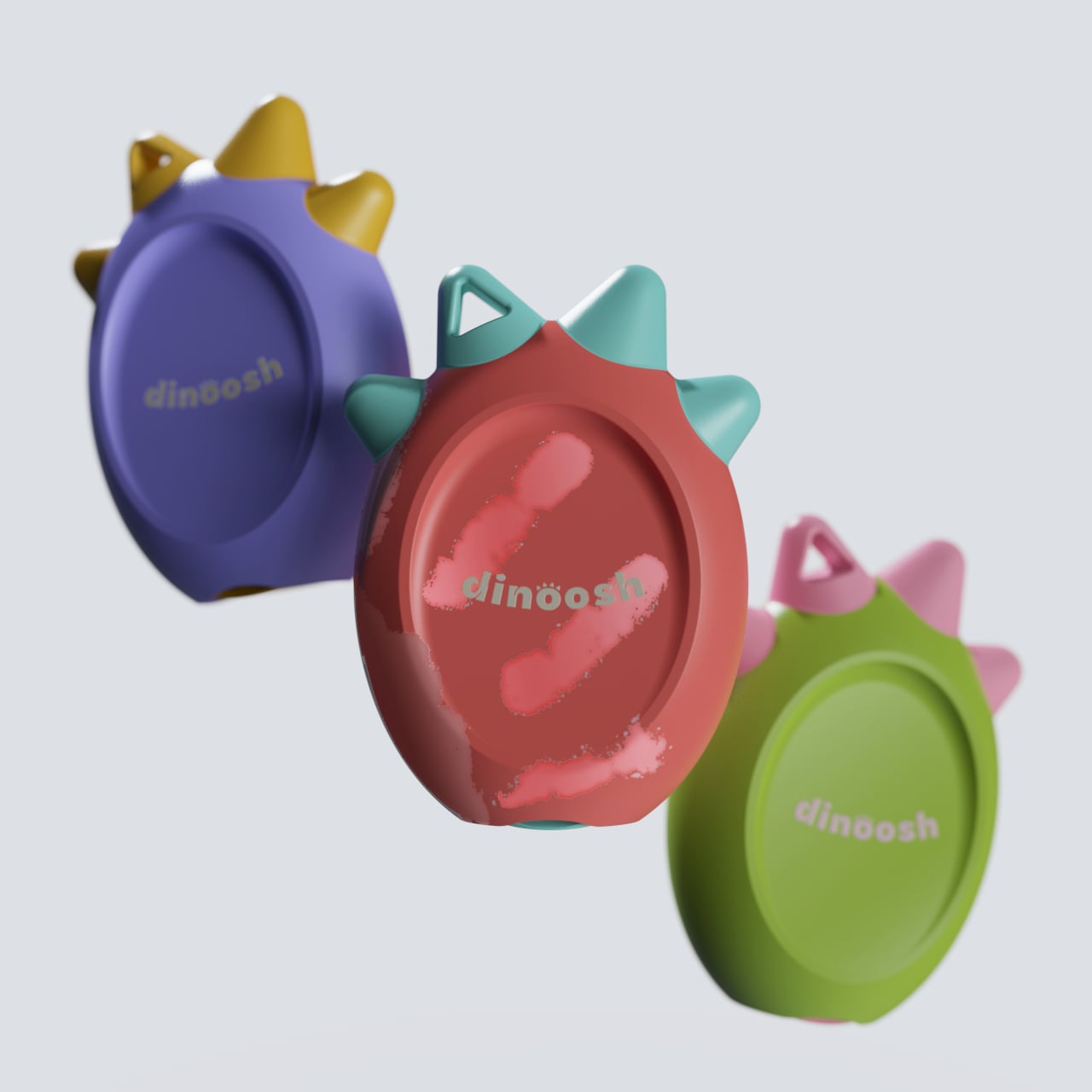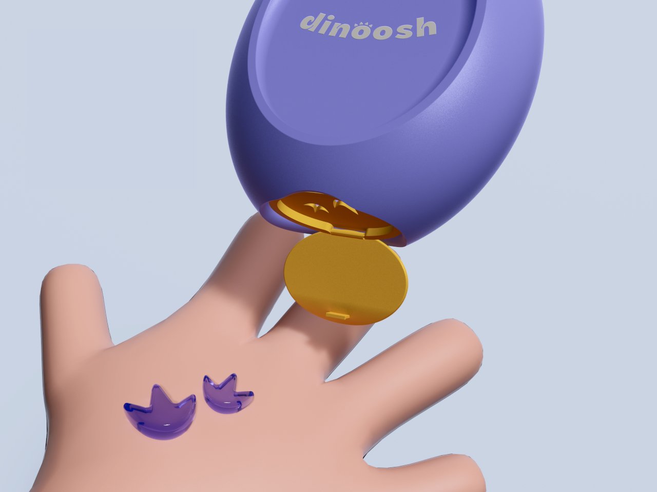 Dinoosh est un outil de lavage des mains inspiré des dinosaures, de la taille d’une paume, qui unit un distributeur de savon, un grattoir et un minuteur coloré. Son design représente une patte de dinosaure douce et arrondie, ornée de trois épines en haut et d’une boucle permettant de l’accrocher à des sacs à dos ou des crochets de salle de bain. L’objectif est d’offrir aux enfants un compagnon amical qui transforme le lavage des mains en un moment agréable.