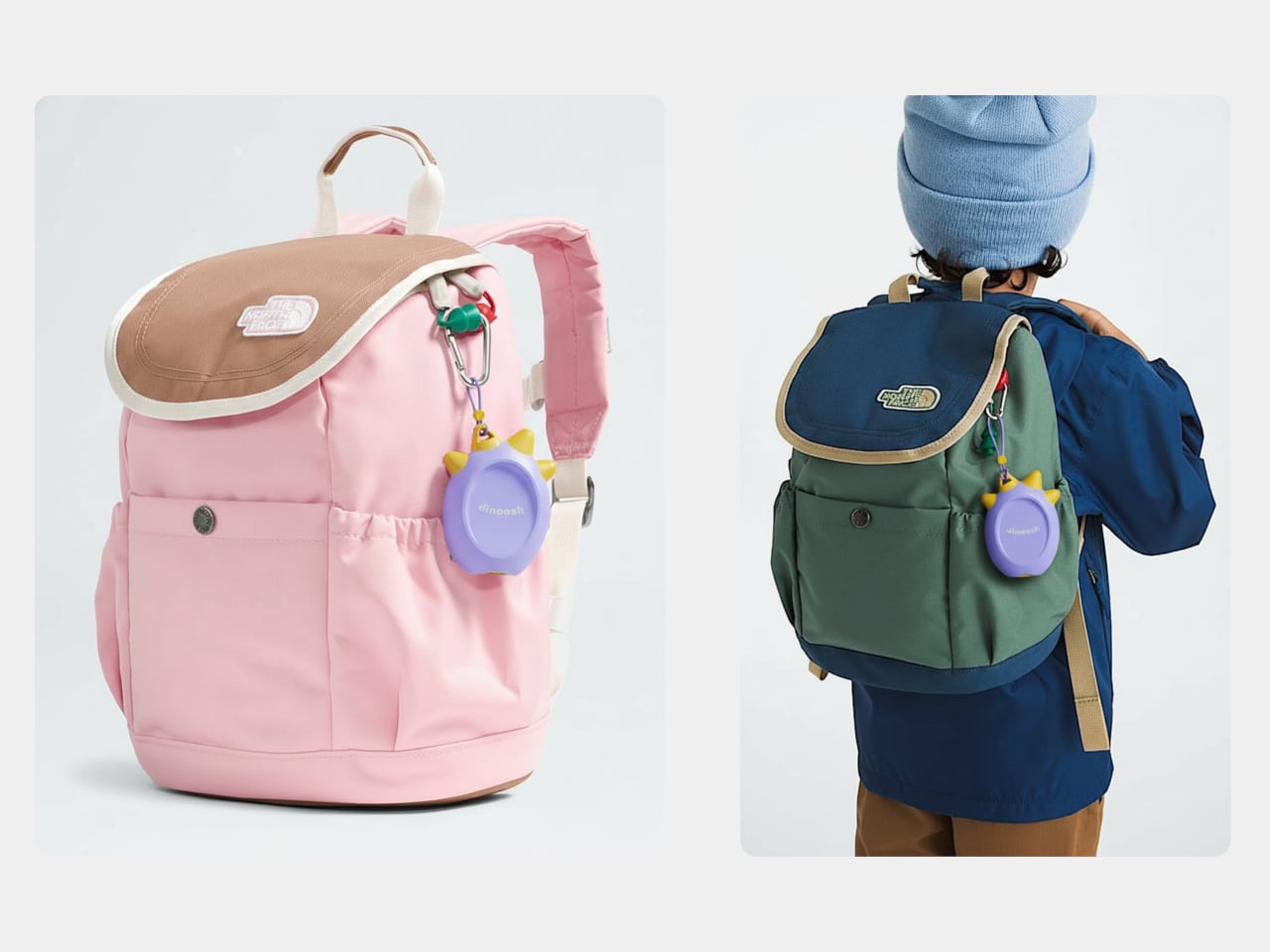 Dinoosh est conçu avec une petite boucle permettant de l’accrocher facilement à des sacs à dos, des crochets de salle de bain ou des poignées de poussettes, le rendant toujours visible et accessible pour les enfants.
