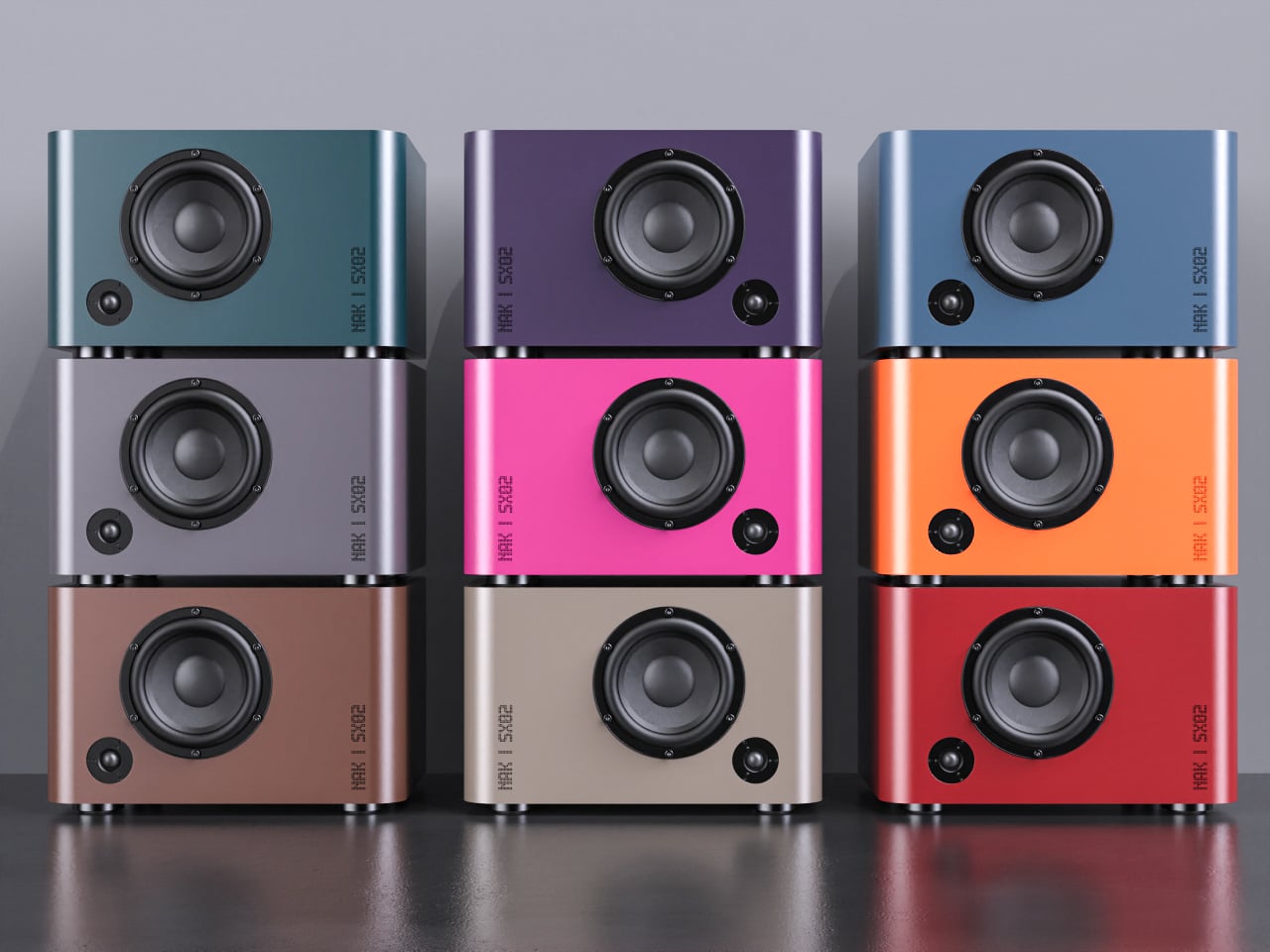 Les enceintes compactes présentent une forme de rectangle arrondi, chacune intégrant un haut-parleur et un tweeter, le tout disponible dans des couleurs Pantone personnalisables. Cela permet aux utilisateurs de les associer en tant qu’accents colorés dans leur espace. Par exemple, on peut marier le teal avec l’orange ou assortir une paire à une étagère ou un mur, les intégrant ainsi au jeu de couleurs de la pièce, au lieu de les cacher ou de s’excuser pour leur présence lors de visites.
