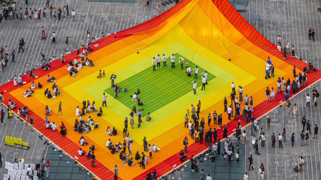 Ce projet a été conçu par MVRDV, un studio d’architecture réputé. Le Mega Mat, d’une superficie de 875 mètres carrés, est constitué de 532 pièces rectangulaires qui ont été réalisées dans le respect des motifs textiles traditionnels thaïlandais. Ce tapis gigantesque, élaboré pour le Bangkok Design Week, est à la fois une installation esthétique et fonctionnelle.