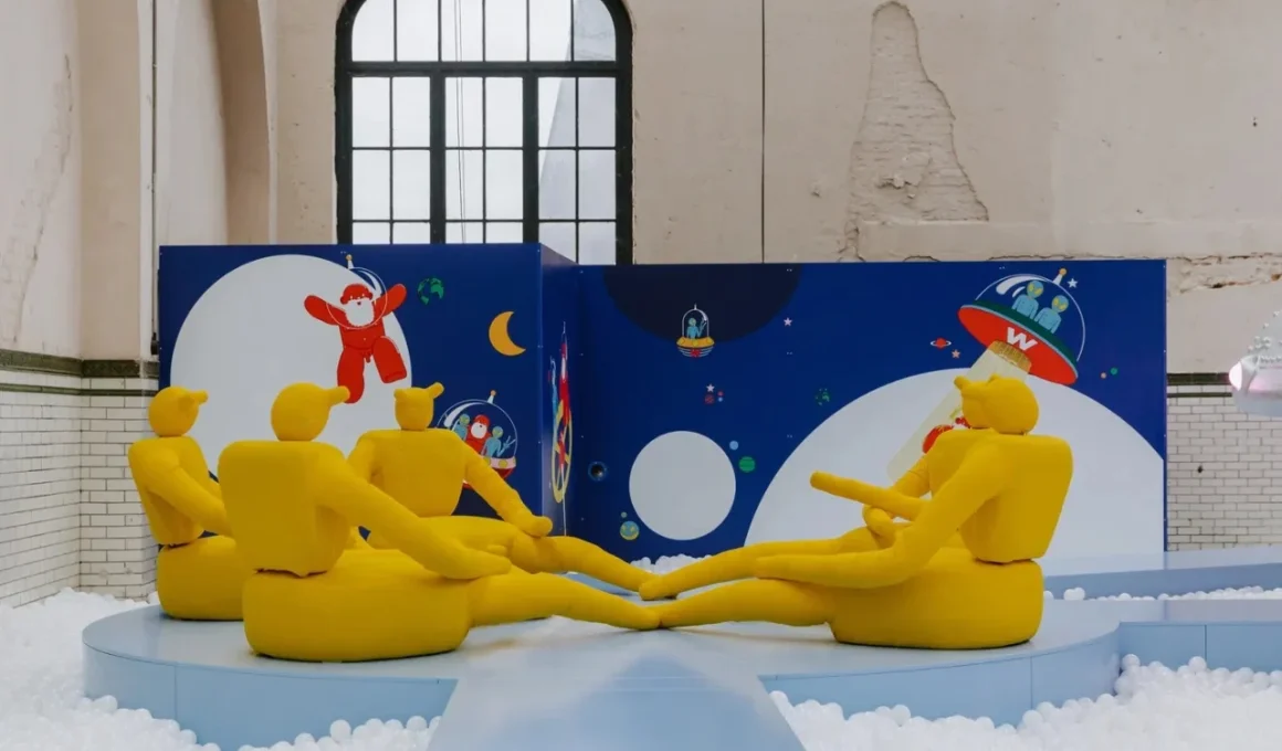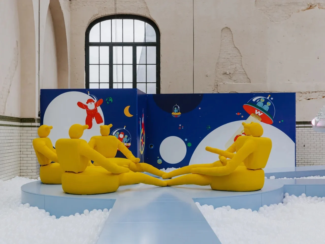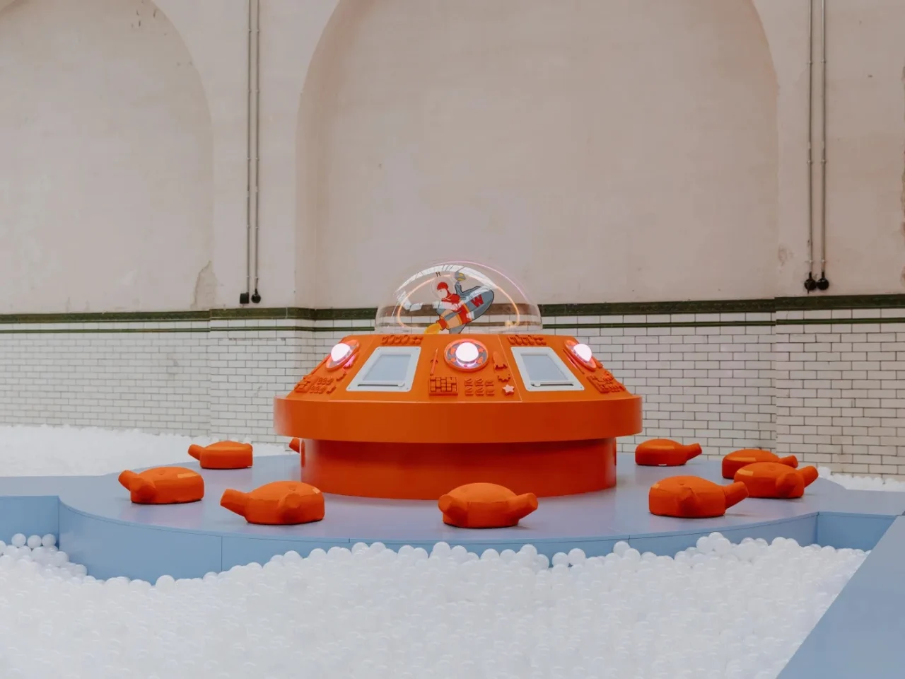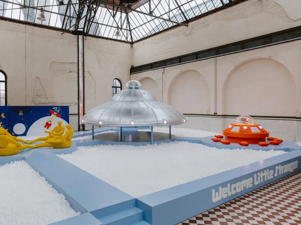 « Welcome Little Stranger » est une installation créée par le designer belge Walter Van Beirendonck, qui transforme un ancien entrepôt industriel en un terrain de jeu extraterrestre interactif pour enfants, où ils peuvent explorer des structures de jeu souples et des environnements immersifs.