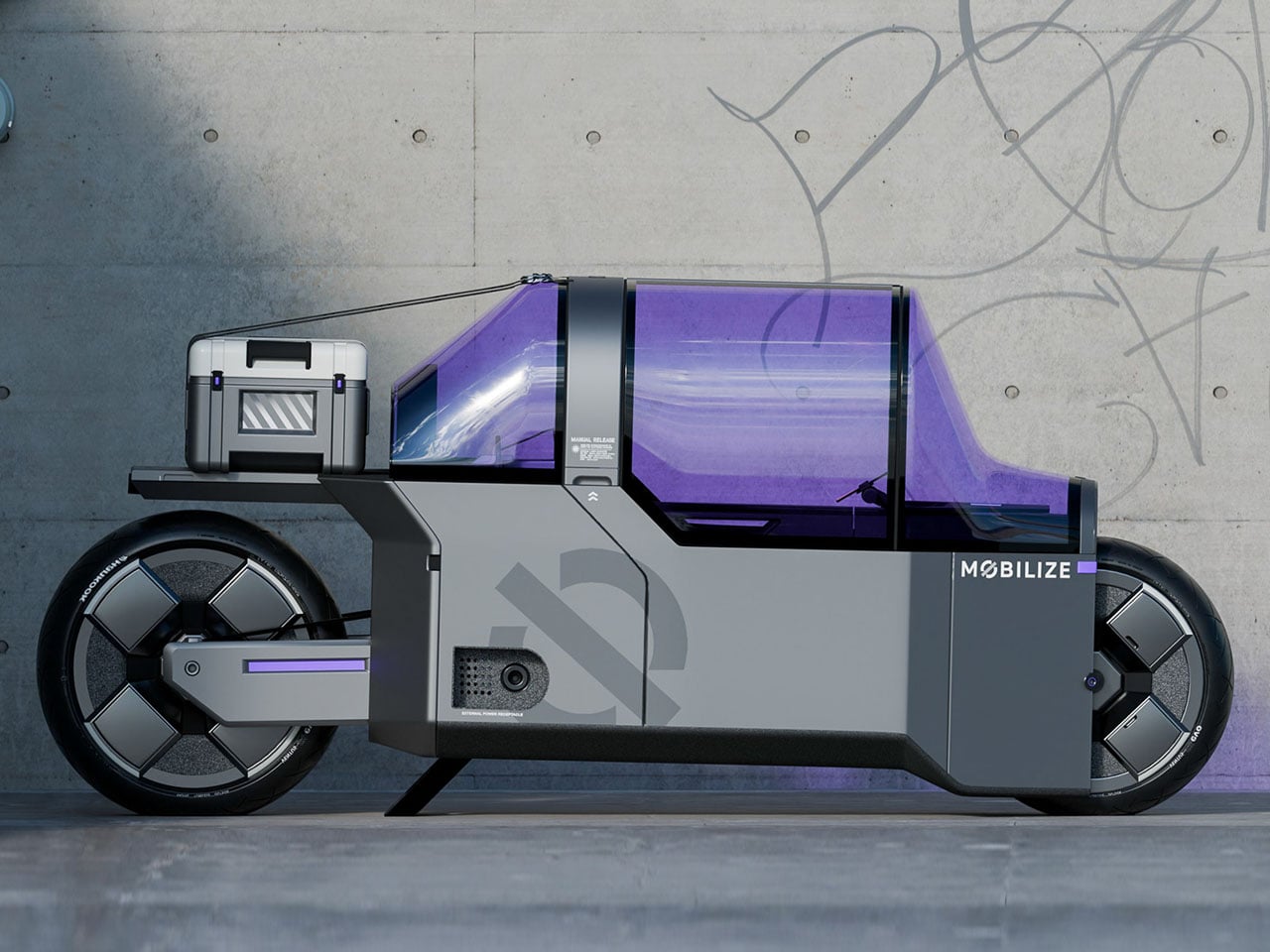 Conçu par Jade Rivalland, le NANO Mobilize repercute l’aventure et la tendance, tout en ciblant un public jeune et dynamique. À l’extérieur, ce vélo présente des éléments de design industriel qui dégagent une image moderne et tendance, alliant esthétique et fonctionnalité. L’espace conducteur est enveloppé dans une section de verre panoramique, contrastant avec l’idée des motos café racers, mais privilégiant une position assise semblable à celle des voitures, garantissant ainsi un maximum de confort.