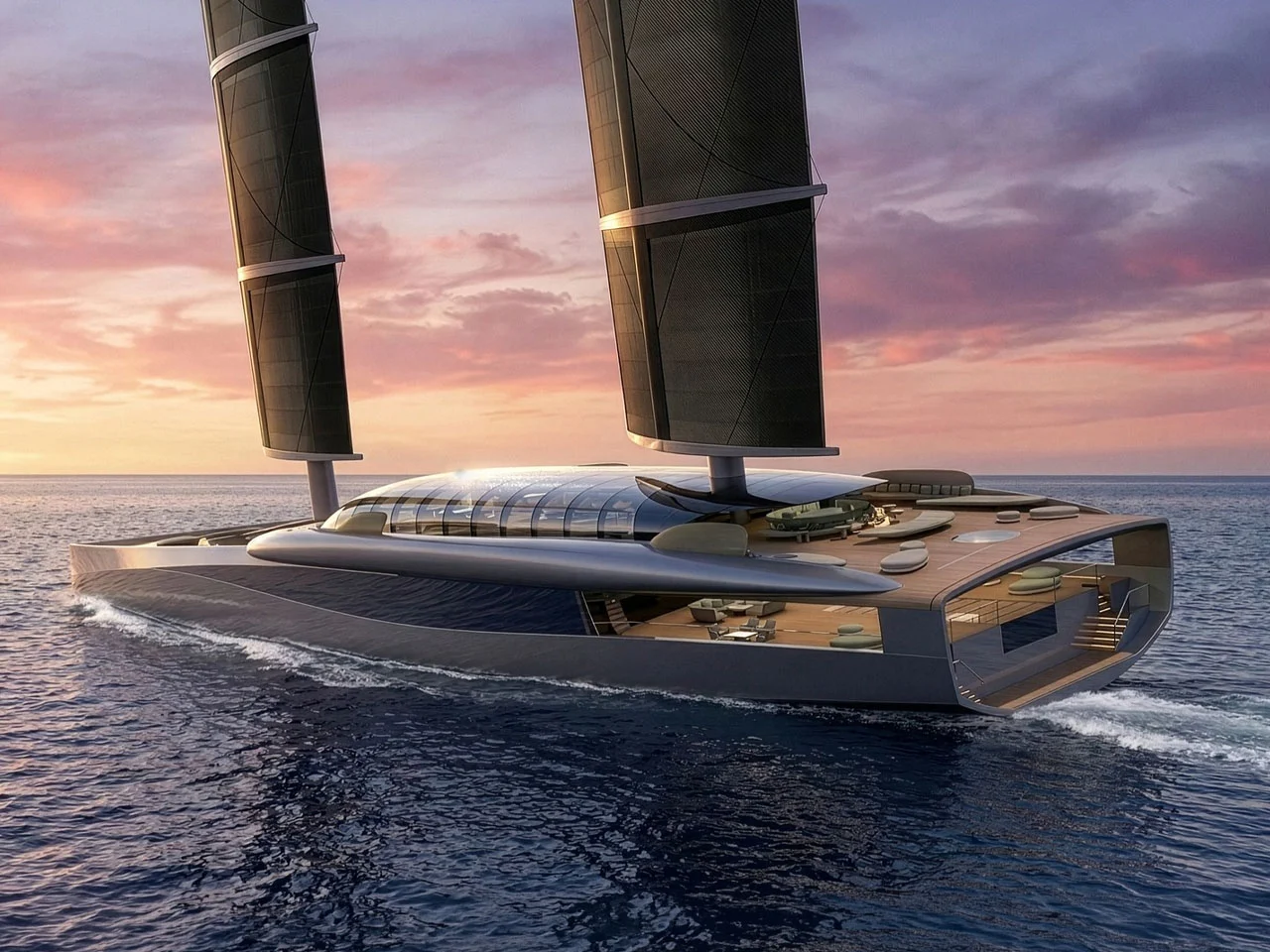 Au-delà de son agencement et de son système de voile, le concept A100 est également le reflet d’un intérêt croissant pour des designs de superyachts plus durables. En s’appuyant fortement sur la propulsion éolienne soutenue par des systèmes énergétiques avancés à bord, le concept explore des moyens de réduire la dépendance à l’égard des moteurs conventionnels. Si ce projet venait à se concrétiser, l’A100 se classerait parmi les plus grands yachts à voile jamais construits.