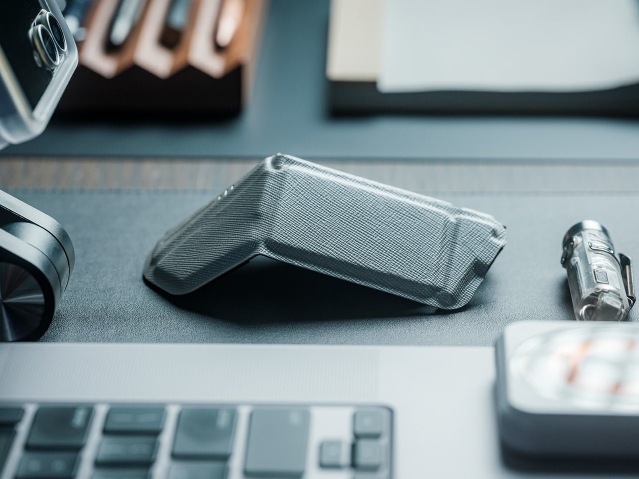Les accessoires qui brillent dans les environnements de travail compacts partagent une conception réfléchie, pliant lorsqu’ils sont rangés, combinant plusieurs fonctions ou fournissant une clarté organisationnelle pour éviter le désordre visuel. Le clavier WELDER avec son écran intégré élimine une catégorie entière de périphériques. La souris OrigamiSwift se plie en dimensions de poche sans sacrifier le confort ergonomique. Le crayon métallique everlasting est toujours prêt dans votre poche, réduisant l’encombrement du bureau. Chaque article justifie sa place grâce à une ingénierie réfléchie qui privilégie la fonctionnalité et l’efficacité spatiale.