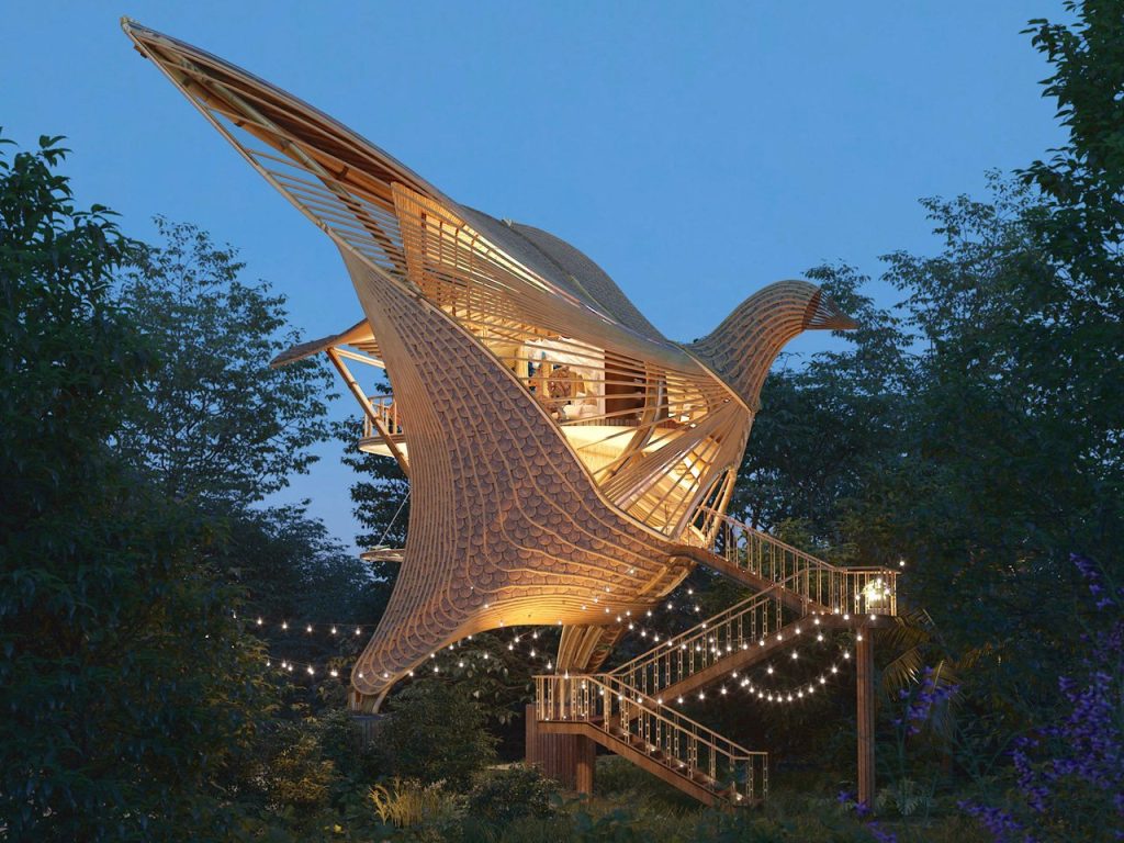 La villa « Birdie », conçue par Thilina Liyanage, illustre parfaitement cette approche. Faite de bambou et de bois, elle est conçue comme un oiseau majestueux en vol, offrant des vues magnifiques sur la forêt environnante. Avec des fenêtres larges et des espaces confortables, ce refuge redéfinit l’expérience du glamping.