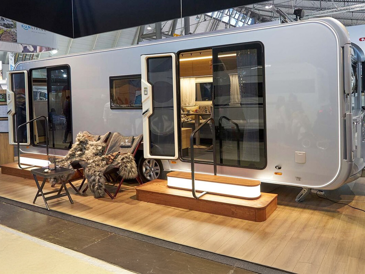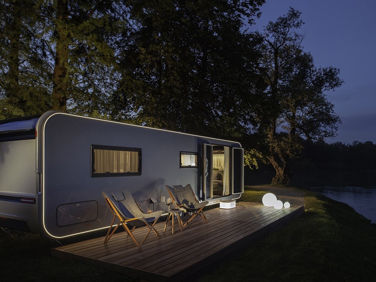 L’Astella de Adria est une maison mobile de luxe qui redéfinit le design moderne de caravane grâce à un accent sur l’élégance, la simplicité, et la fonctionnalité. Inspirée par l’esthétique des années 1950 de Pan Am, la structure présente un agencement ouvert qui inclut un salon, une cuisine, une salle de bain, et une chambre. Le design maximise l’espace grâce à des plafonds élevés, des surfaces épurées, et un minimum de détails, offrant un environnement intérieur raffiné et efficace.