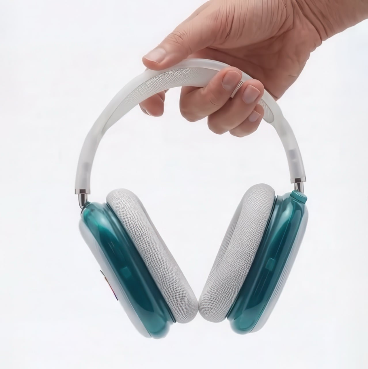 Saffy Creatives a redessiné les AirPods Max en remplaçant les parties métalliques par un plastique transparent/translucide à deux tons. Le design conserve la silhouette d’origine mais adopte des couleurs inspirées du célèbre Bondi Blue d’Apple.