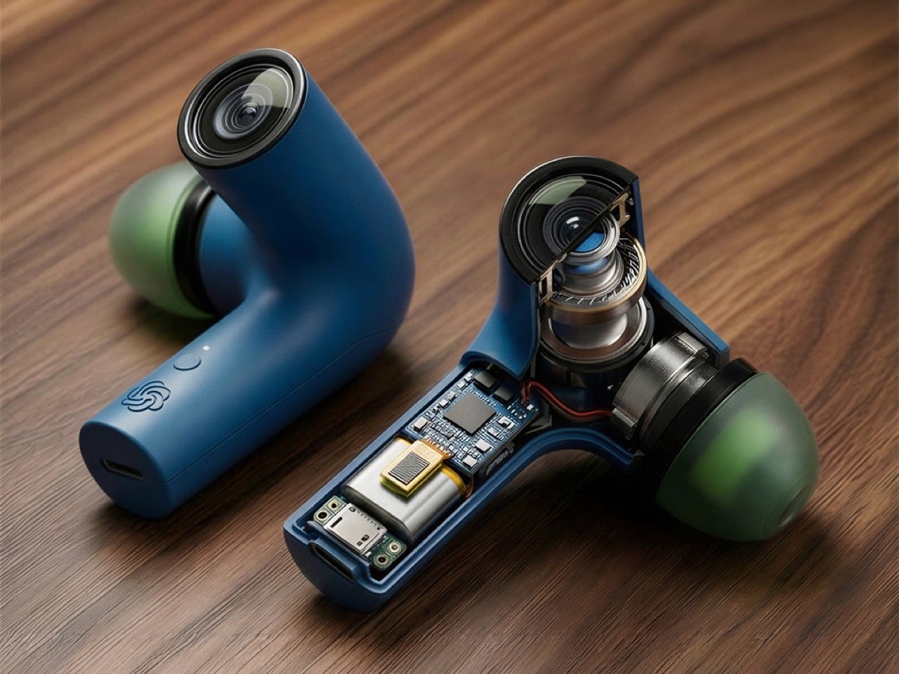 Ce concept d’écouteurs TWS se démarque par une idée originale : chaque écouteur est équipé d’une tige supplémentaire dotée d’une caméra intégrée, placée près de votre ligne de vue naturelle. En s’associant à ChatGPT, ces lentilles créent un flux visuel continu pour un assistant qui reste dans vos oreilles. Ce système peut lire des menus, interpréter des panneaux, décrire des scènes et vous guider dans une ville sans que vous ayez besoin d’un écran. Le design reste familier, tandis que les capacités apparaissent nouvelles. Si OpenAI cherche à établir une présence matérielle, un tel produit pourrait rendre l’AI moins perçue comme une simple démo et davantage comme une habitude quotidienne.