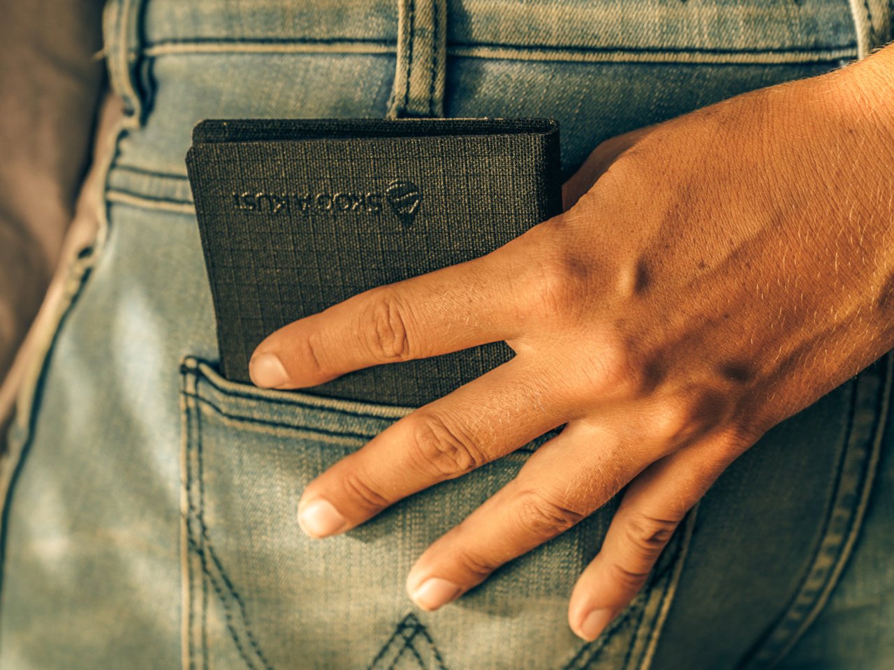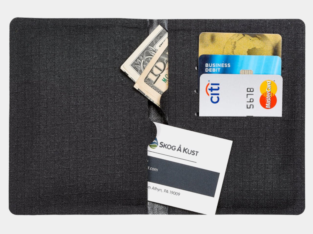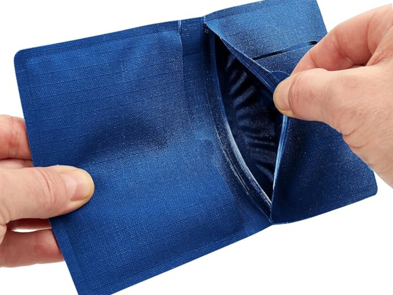Le Planbok, le portefeuille flottant étanche de Skog Å Kust, adopte une approche différente. Il allie protection étanche et design bi-fold élégant qui tient parfaitement dans votre poche arrière. Fabriqué en nylon ripstop revêtu de TPU de 420 deniers avec des coutures soudées, il bénéficie d’une classification IPX6 en matière de résistance à l’eau. Cela signifie qu’il résiste à des averses intenses et aux éclaboussures sans laisser passer une goutte. La vraie prouesse est qu’il flotte même lorsqu’il est chargé avec six cartes, 20 billets et des clés.