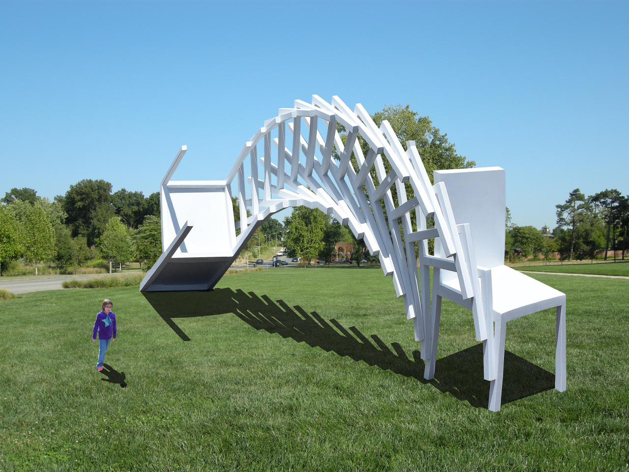 Michael Jantzen explore cette dynamique depuis des années. Sa série « Moving Furniture » repose sur une simple idée : capturer la forme d’objets ordinaires comme des chaises et des tables en les répétant à intervalles progressifs, comme si nous les voyions en mouvement, puis relier ces moments en une seule pièce sculpturale. Le résultat est une structure que l’on peut encore utiliser, même si son apparence nous en dissuade.