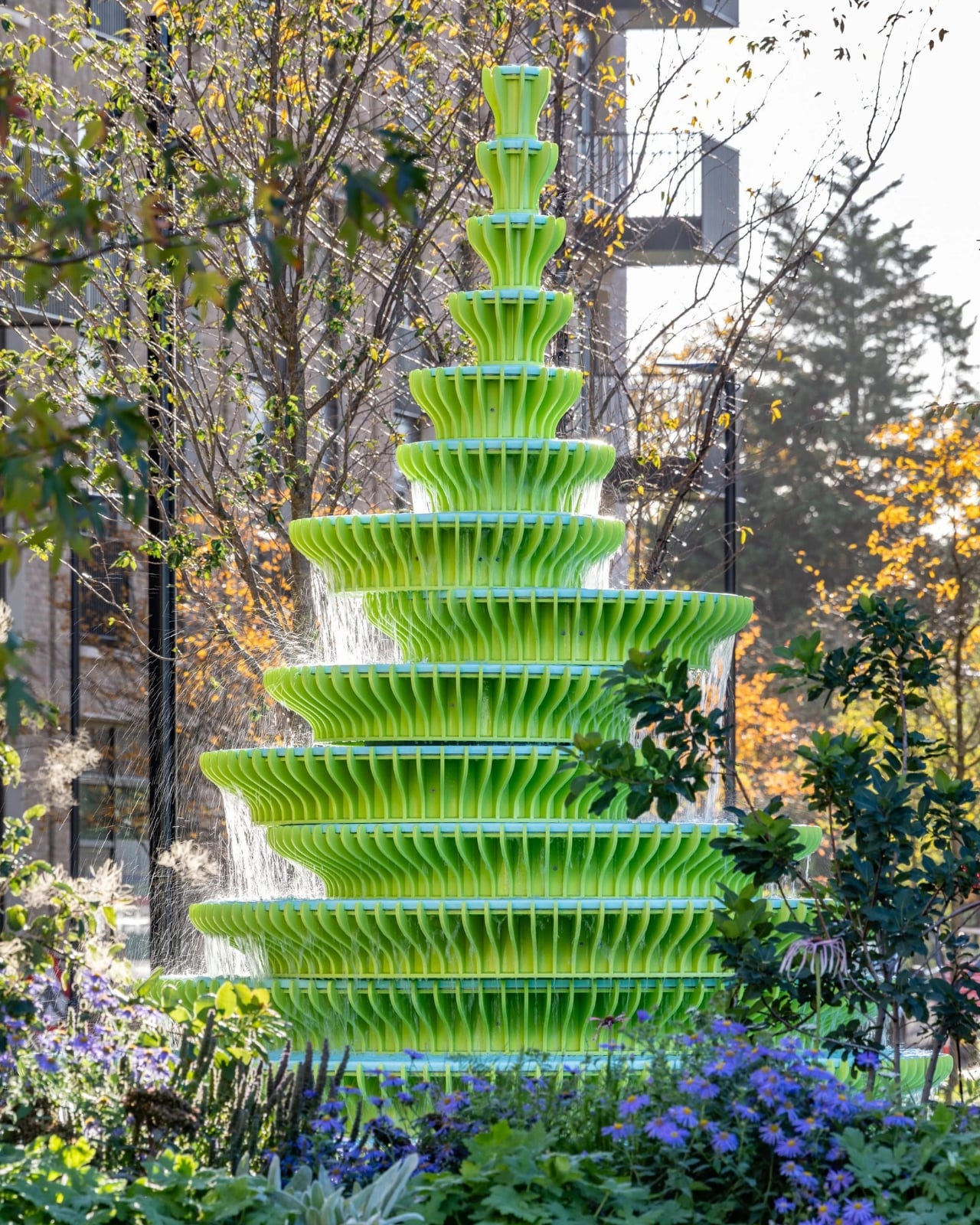 Une Source Verte Éclatante Marque l’Inauguration d’un Nouveau Quartier à Londres