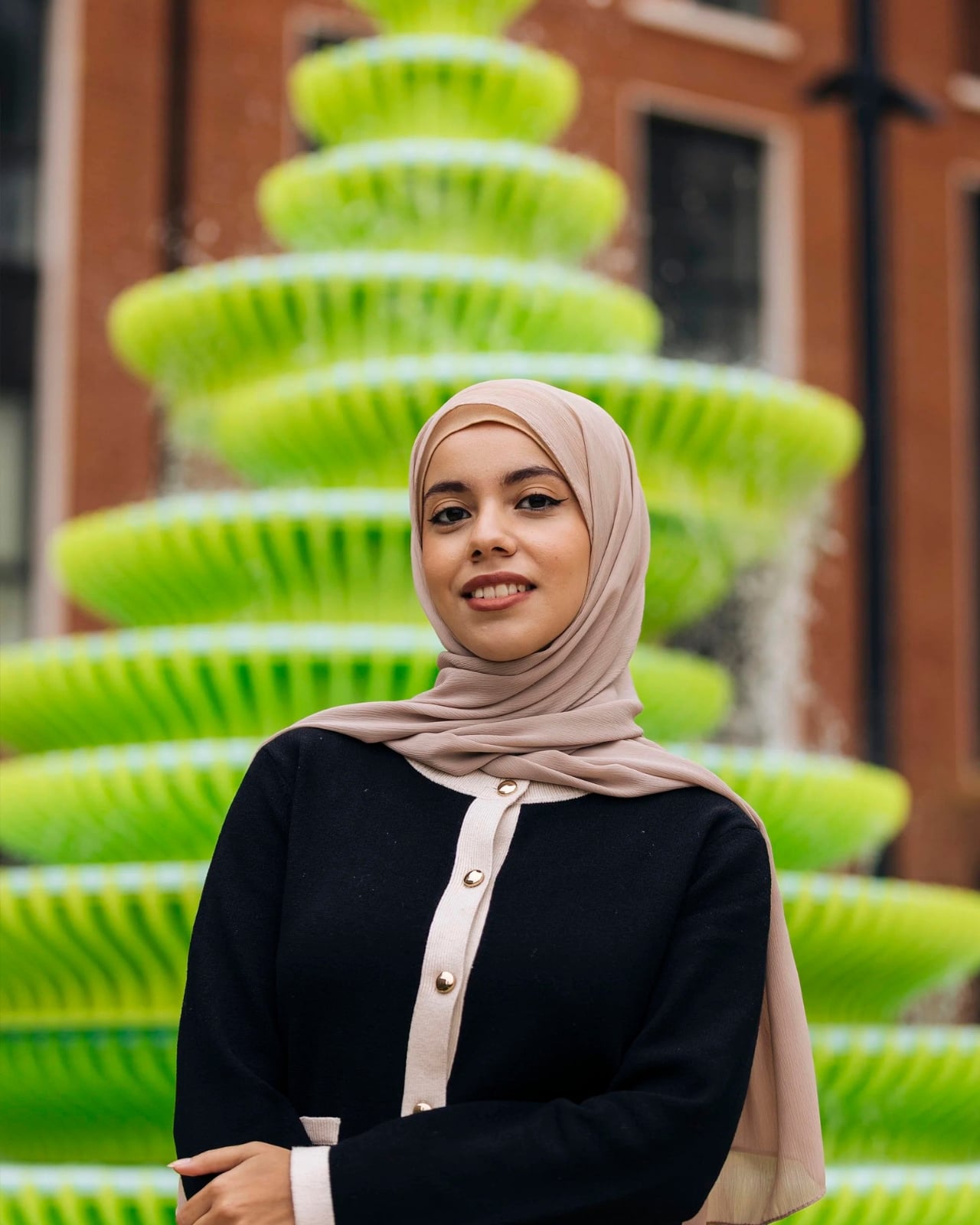La couleur verte lumineuse de la fontaine n’est pas simplement décorative ; elle fonctionne comme un point focal qui attire les passants. Cette teinte énergique, qui évoque parfois des éléments de l’art urbain, contribue à établir une connexion avec l’environnement moderne et dynamique de Brent Cross Town.