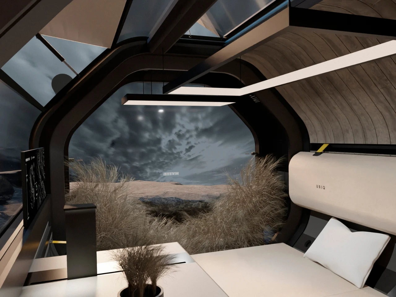 La plateforme structurelle utilise des griffes similaires à celles d’un crabe pour maintenir la partie habitable, permettant ainsi une modularité et une adaptabilité à différents scénarios d’utilisation. Cela offre une flexibilité dans le design qui va au-delà d’un véhicule à usage unique.