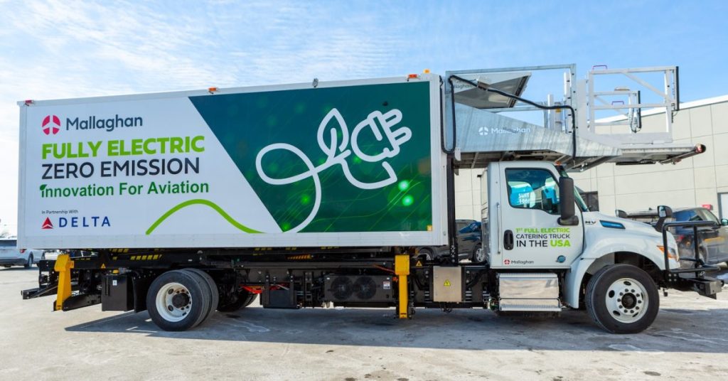 Le fabricant de matériel de soutien au sol pour les aéroports, Mallaghan, a récemment mis en service ce qu’il qualifie de premier camion de restauration réfrigéré entièrement électrique en Amérique du Nord, spécifiquement destiné à l’industrie aéronautique.