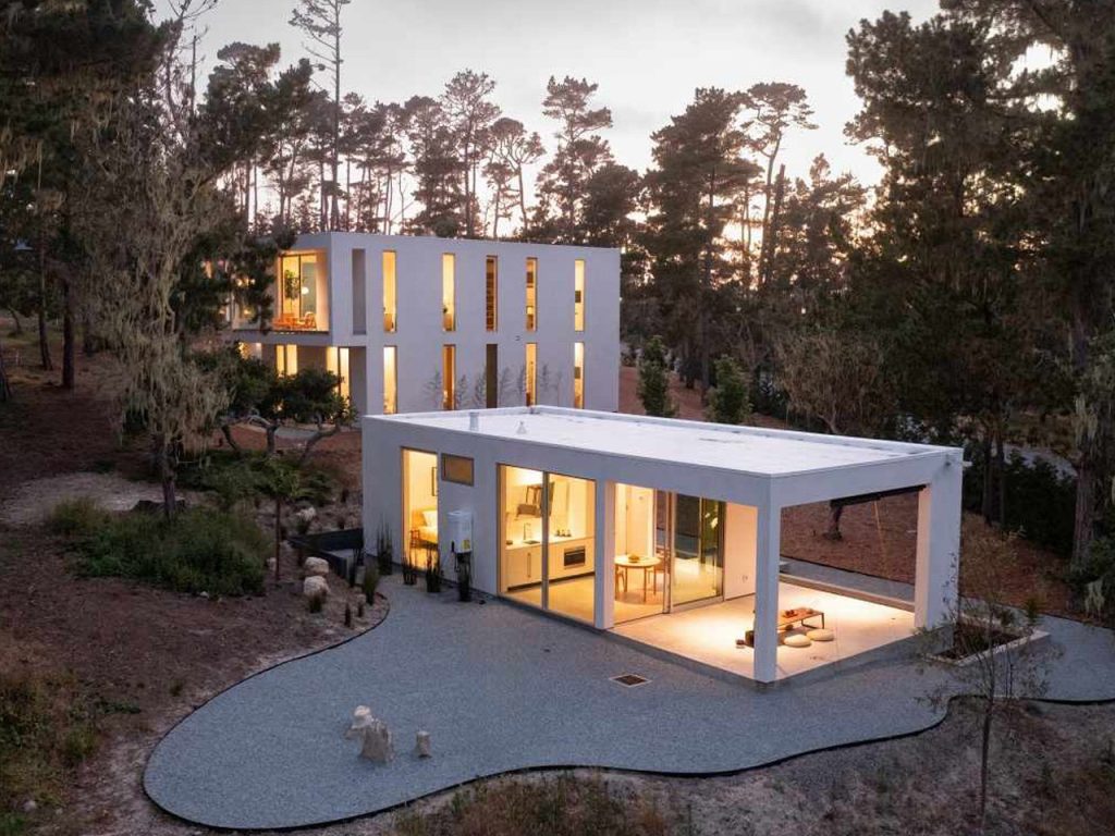 La Maison Waterbridge nous dévoile une manière de vivre entre l’intérieur et l’extérieur. Nichée au cœur des pins de Pebble Beach, cette structure recouverte de verre s’élève paisiblement au-dessus du paysage, se présentant comme une silhouette géométrique apaisante. Elle incarne un hommage à la nature et un exploit architectural. Conçue par une artiste locale, l’esprit de la maison s’inspire du style Japandi, qui fusionne la sérénité japonaise avec la retenue scandinave, tout en résonnant avec la chaleur de la côte californienne.