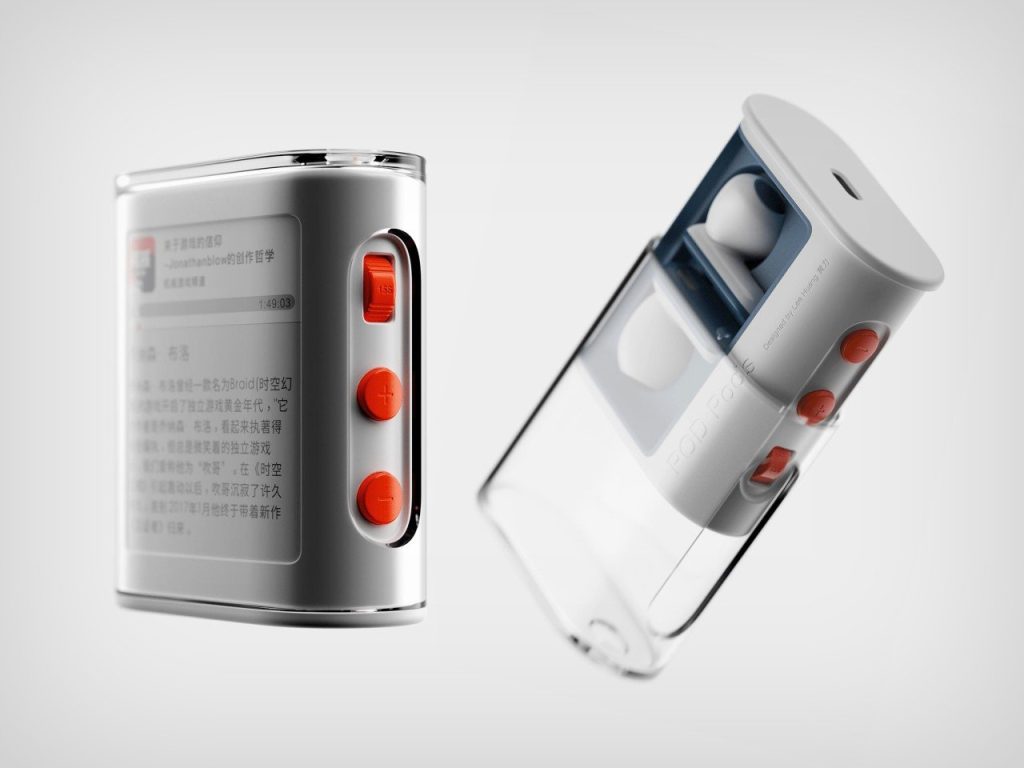 Conçus par Lee Huang, les POD Pods présentent un design attrayant avec un boîtier semi-transparent. Ce dernier permet de voir les écouteurs à l’intérieur, tout en offrant un accès facile aux commandes situées sur le côté. Une interface conviviale, rendue possible grâce à un écran à encre électronique basse consommation, garantit une durée de vie de la batterie prolongée, même pour un affichage de près de 5 cm.