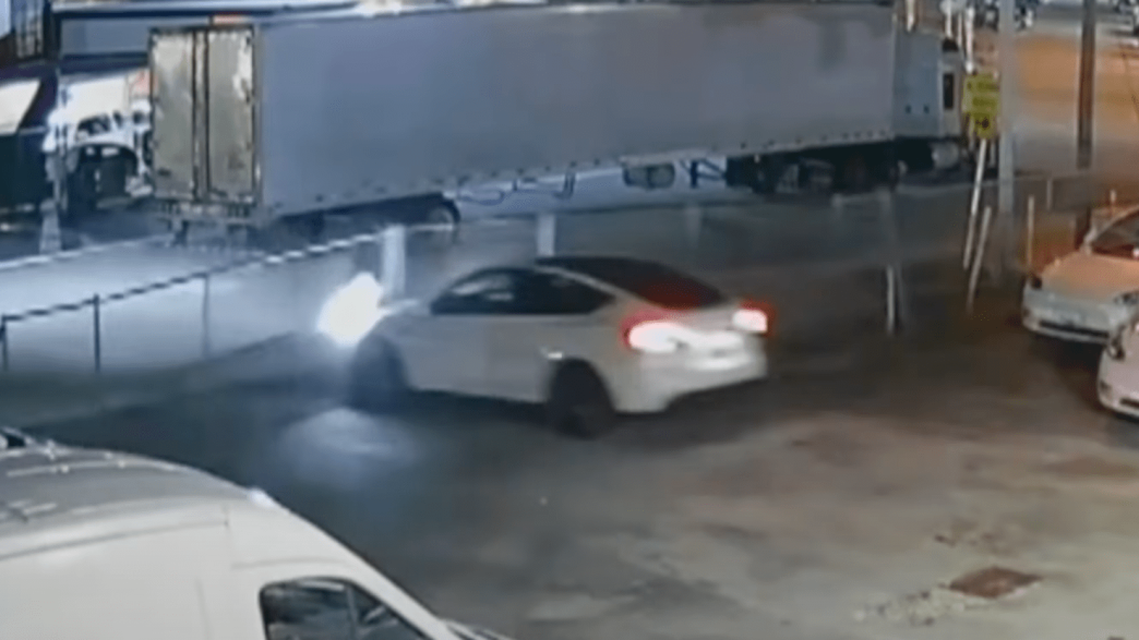 Ils ont d’abord utilisé un Modèle Y pour enfoncer la clôture, abandonnant le véhicule endommagé afin que chacun puisse sortir un véhicule Tesla intact du parking.