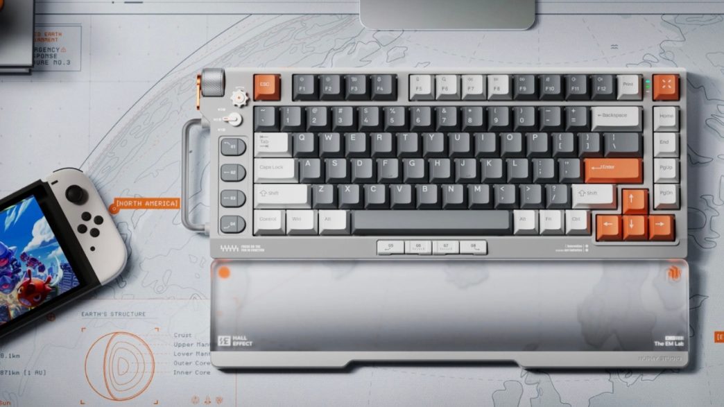 La jeune marque NuPhy s’est rapidement imposée sur le marché des claviers mécaniques. Leur dernier modèle, le Field75 HE Keyboard, marque une étape importante en étant conçu comme un clavier de jeu à part entière. Bien qu’il soit également destiné à la productivité, la majorité des fonctionnalités supplémentaires séduiront davantage les joueurs, qu’ils soient occasionnels ou fervents. Ce clavier est compatible avec divers systèmes d’exploitation tels que Windows, macOS, Linux, Android et iOS, ce qui en fait un accessoire polyvalent pour tous vos appareils. Avec son esthétique retro-futuriste et ses nombreux engrenages et outils, ce clavier sort des sentiers battus des claviers mécaniques conventionnels.