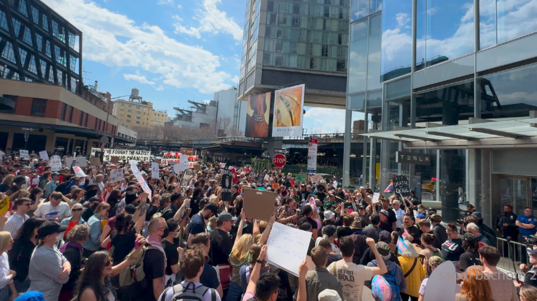 Ce mouvement, auto-dénommé ‘Tesla Takedown’, a récemment organisé sa plus grande manifestation à ce jour. L’événement visait à organiser des protestations dans chaque magasin et centre de service Tesla aux États-Unis, en plus de centaines d’autres manifestations à travers le monde. Les manifestations, comme celle à New York, ont attiré des centaines, voire des milliers de personnes.