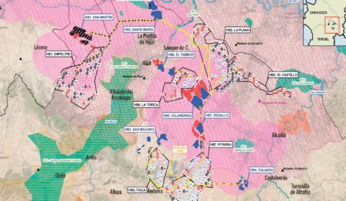 Cette conception couvrait le territoire de 10 communes du Bas Aragon Historique, parmi lesquelles Andorra, Alcañiz, Calanda, Alcorisa, Híjar, Albalate del Arzobispo, Samper de Calanda, Castelnou, La Puebla de Híjar et Jatiel. L’objectif était d’exploiter la quasi-totalité de la capacité d’évacuation libérée après la fermeture de la centrale thermique, estimée à 1.202 MW dans le nœud.