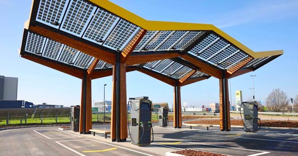 A l’origine, l’ouverture du parc de recharge de Fastned était prévue pour 2024, mais il n’a été officiellement mis en service par l’opérateur autoroutier italien, A4 Holding Group, que cette semaine.